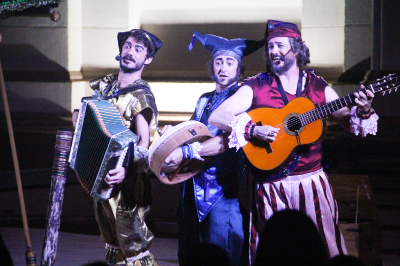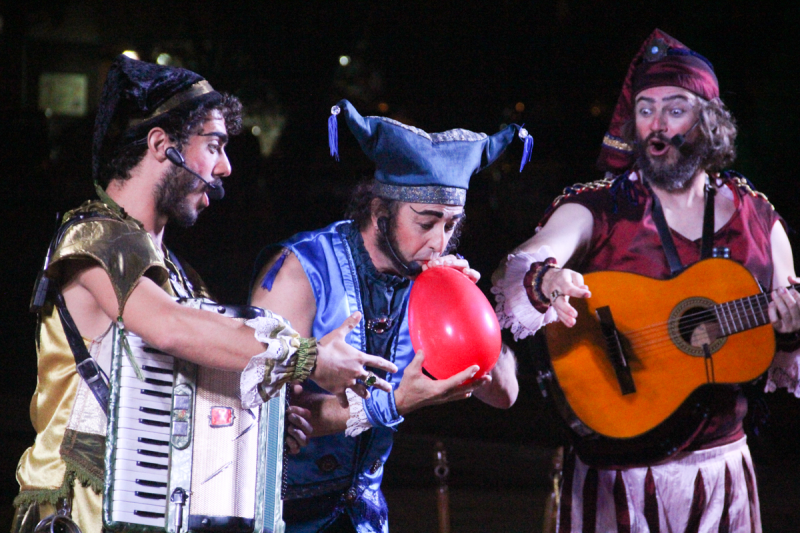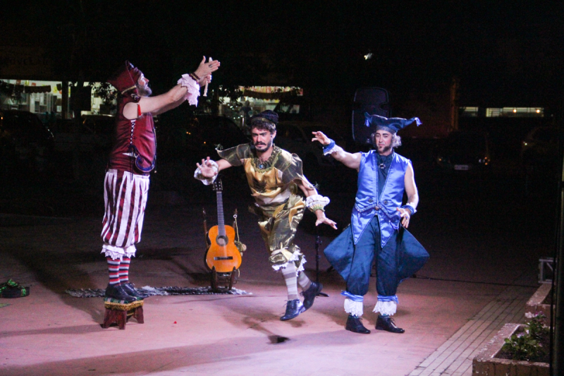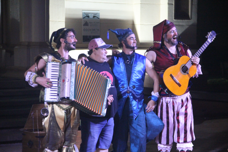 Na primeira noite, dia 17, os espectadores acompanharam a atração dos “Trovadores de Natal”, que faz parte do grupo teatral “De Pernas Pro Ar” de Canoas. O público pôde dar boas risadas com uma apresentação que trouxe magia, malabarismo, poesia e música, de forma engraçada e com uma mensagem de um Natal mais humanizado. Sob a ótica do encanto, com a música e a poesia encenada, o grupo agiu de maneira a despertar a alegria. Inspirados nos cantadores de serenatas, três personagens instrumentistas (violão, gaita, flauta, Bodhrán e serrote) buscaram (e conseguiram) trazer o espírito do Natal das brincadeiras, das cantigas natalinas cantadas em família. Artista com virtuosismo das técnicas circenses, contadores de histórias que interagiram com o público trocando sentimentos de pura beleza.