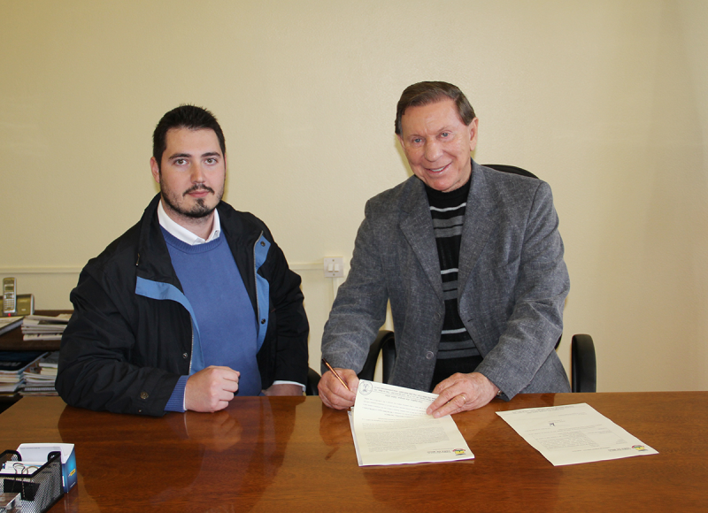 Após os pronunciamentos, o prefeito Olívio José Casali e o sócio proprietário da Carpenedo, Lucas Carpenedo, realizaram a assinatura do Contrato nº 117/2014.