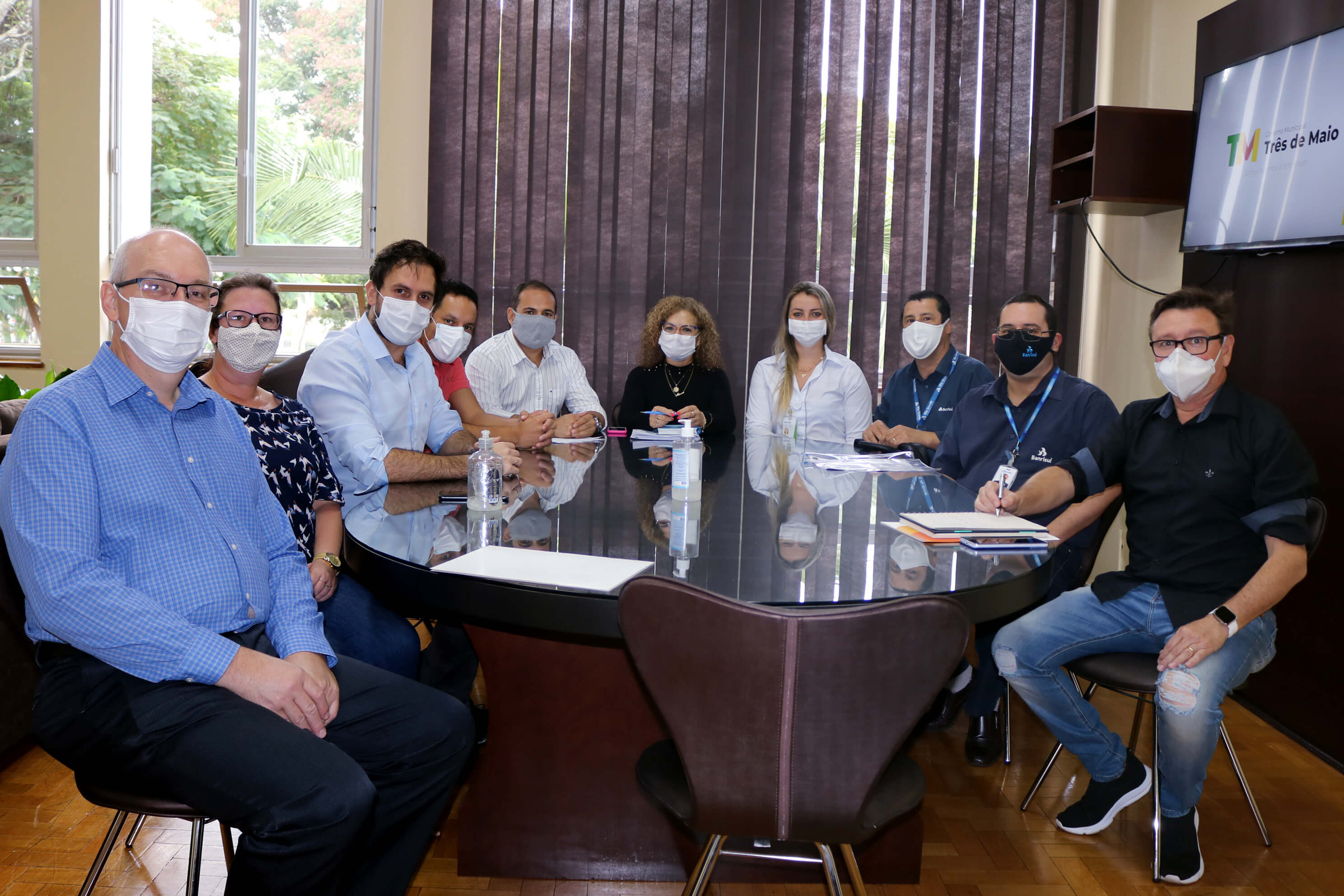 Nesta semana, o prefeito municipal, Marcos Corso, esteve reunido com representantes de agências bancárias do município, juntamente com integrantes da Secretaria da Fazenda, Administração, Gabinete e Setor Pessoal, para debater o aumento da margem do empréstimo consignado de 30% para 35%.