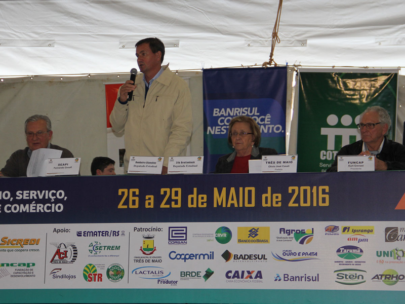 Também estiveram presentes no evento o presidente da Câmara de Vereadores, Luiz José Lena; o presidente da Fundação Centro de Capacitação e Atualização do Produtor (Funcap), Kurt Grenzel; deputados estaduais, Élton Weber e Gilmar Sossella; secretário de Estado da Agricultura, Pecuária e Irrigação, Ernâni Polo; secretário de Desenvolvimento Rural e Assistente Técnico Regional de Santa Rosa, Ivar José Kreutz, representando o secretário Tarcísio Minetto; secretária do Ambiente e Desenvolvimento Sustentável, Elenir Dahmer Linauer, representando a secretária Ana Pellini; deputados federais Jerônimo Goergen; Jair Melo, gerente técnico e engenheiro agrícola da CCGL, representante da Ocergs/Sescoop-RS; Darcy Bitencourt, da Embrapa Clima Temperado; Darlan Palharini, secretário-executivo do Sindilat; Adorovaldo Antônio Schio, diretor-presidente da Fepagro; Carlos Alberto Oliveira de Oliveira, diretor técnico da Fepagro; Zeferino Chiele, pesquisador de Fitomelhoramento; Mário Augusto do Nascimento, Famurs; Leonardo Rustick, chefe do Escritório Local da Emater; Pedrinho Signori, representando a Fetag; Jorge Rodrigues, representando a Farsul e Conseleite;