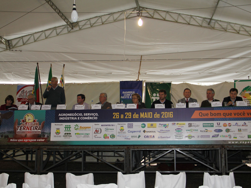 A saudação inicial do evento foi realizada pelo o prefeito municipal, Olívio José Casali; pelo representante da Secretaria Estadual da Agricultura, Pecuária e Irrigação, Fernando Grooff; pelo dr. Carlos Fernandez, Intendente de Oberá, Missiones, Argentina; pelo presidente da 4ª Expoterneira, Clóvis Eduardo Ramos Tomasi e pelo deputado estadual Bombeiro Bianchini. Em virtude do falecimento do irmão do deputado estadual Aloísio Classmann, a deputada estadual Zilá Breitenbach, presidente em exercício da CAPC, mediou a audiência, que teve como tema os Produtores de Leite e o Setor Lácteo.