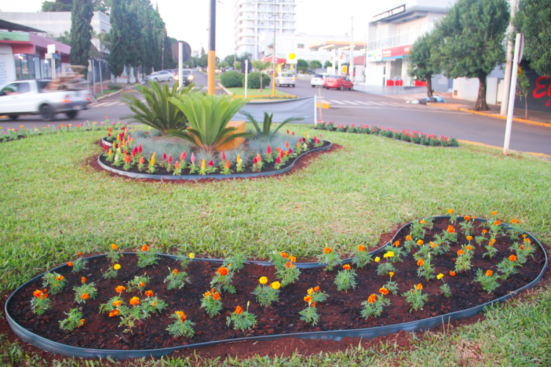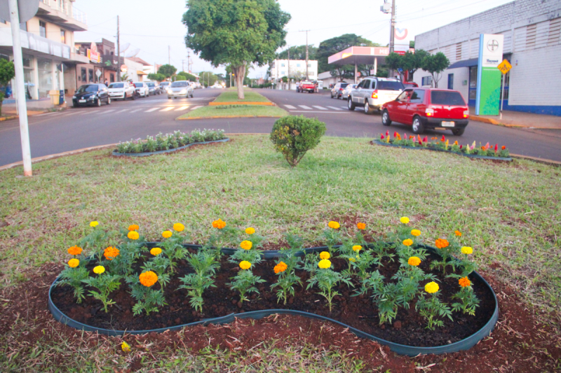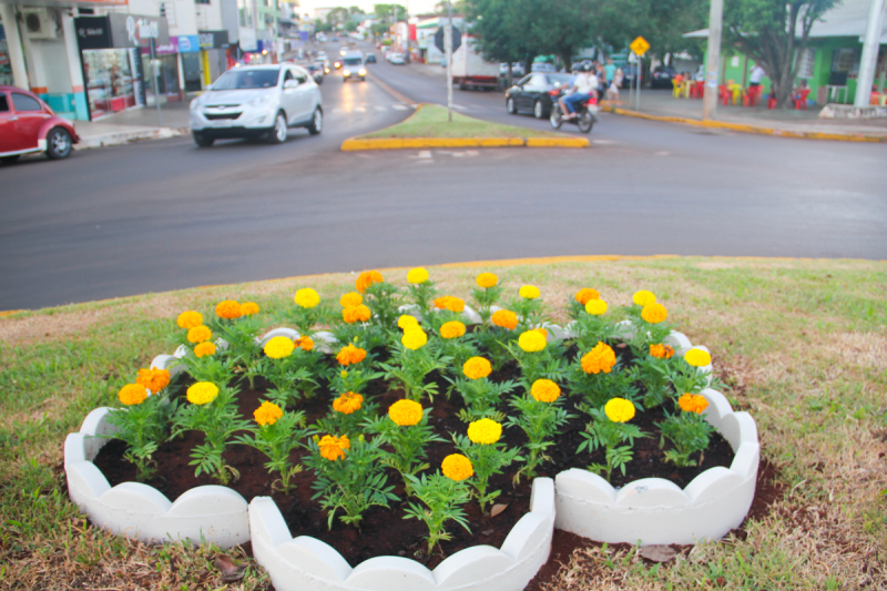 Prefeitura viabilizou todo o plantio de flores nos canteiros e rótulas no centro da cidade