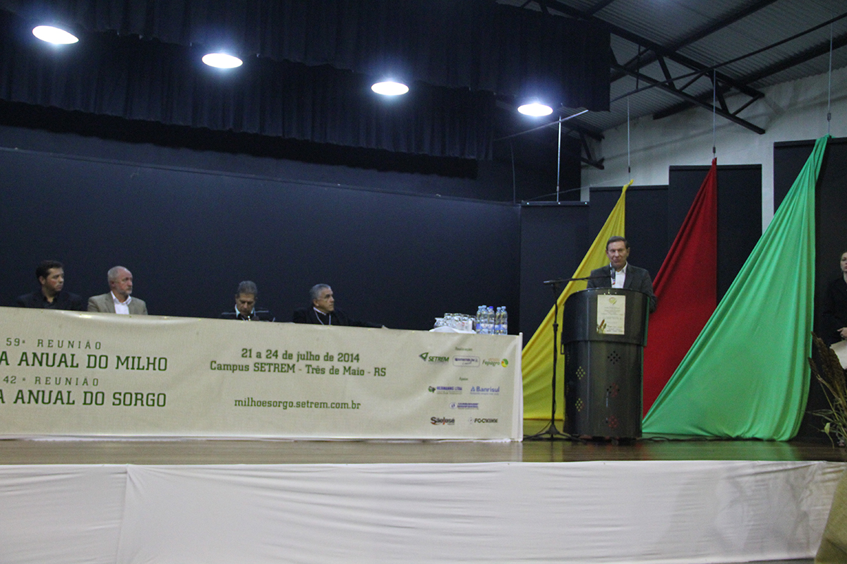O diretor técnico da Fepagro destacou a relevância do milho para a agricultura familiar. O gerente regional da Emater, o representante da Embrapa e o diretor geral da Setrem enfatizaram a história e a importância do milho para a economia no Estado.