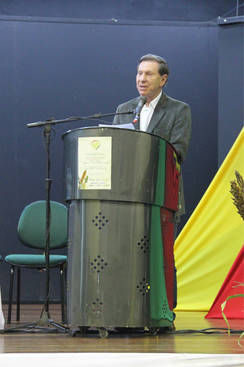 Dando continuação ao evento, o diretor executivo do Sindicato das Indústrias de Produtos Suínos do Rio Grande do Sul (SIPS), Rogério Kerbs, realizou uma palestra sobre as culturas de milho e de sorgo para o desenvolvimento regional. Na sequência, foi abordado a importância do milho de polinização aberta para a agricultura familiar e realizada a entrega de sementes de milho para agricultores da região.