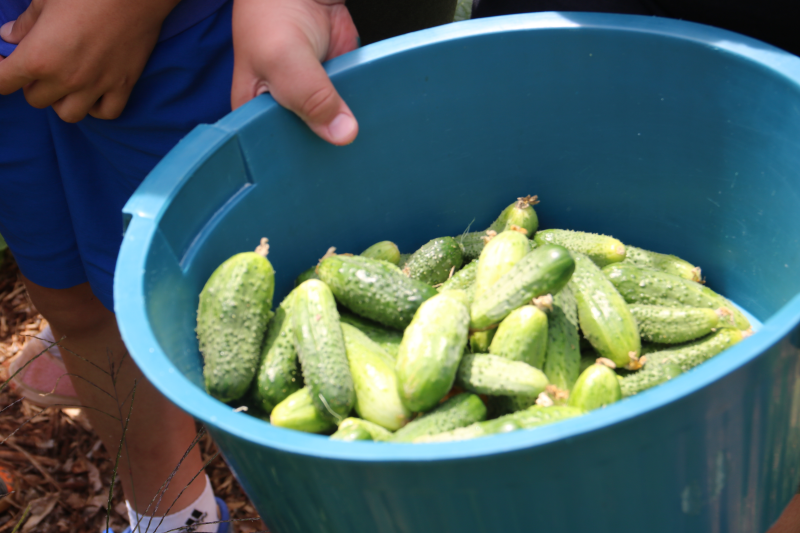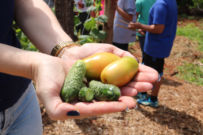Plantio e colheita dos legumes é realizada pelos próprios alunos.