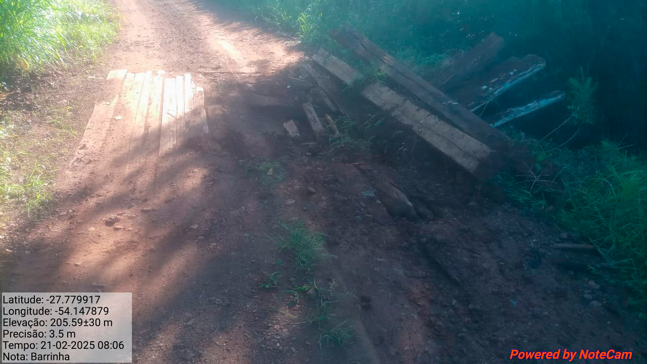 O Governo Municipal, por meio da Secretaria de Agricultura comunica que a ponte localizada na região de Dom Pedro, no trecho de Barrinha Cecim que dá acesso ao Teco Nagel, está interditada para veículos de grande porte. Apenas carros pequenos conseguem passar com cautela.