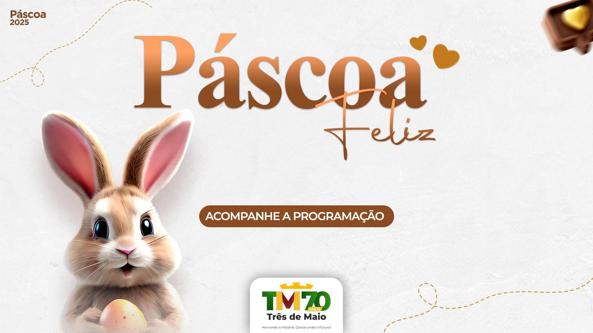 O Governo Municipal de Três de Maio, por meio da Secretaria de Cultura e Turismo, convida você a participar da programação da Páscoa Feliz 2025.