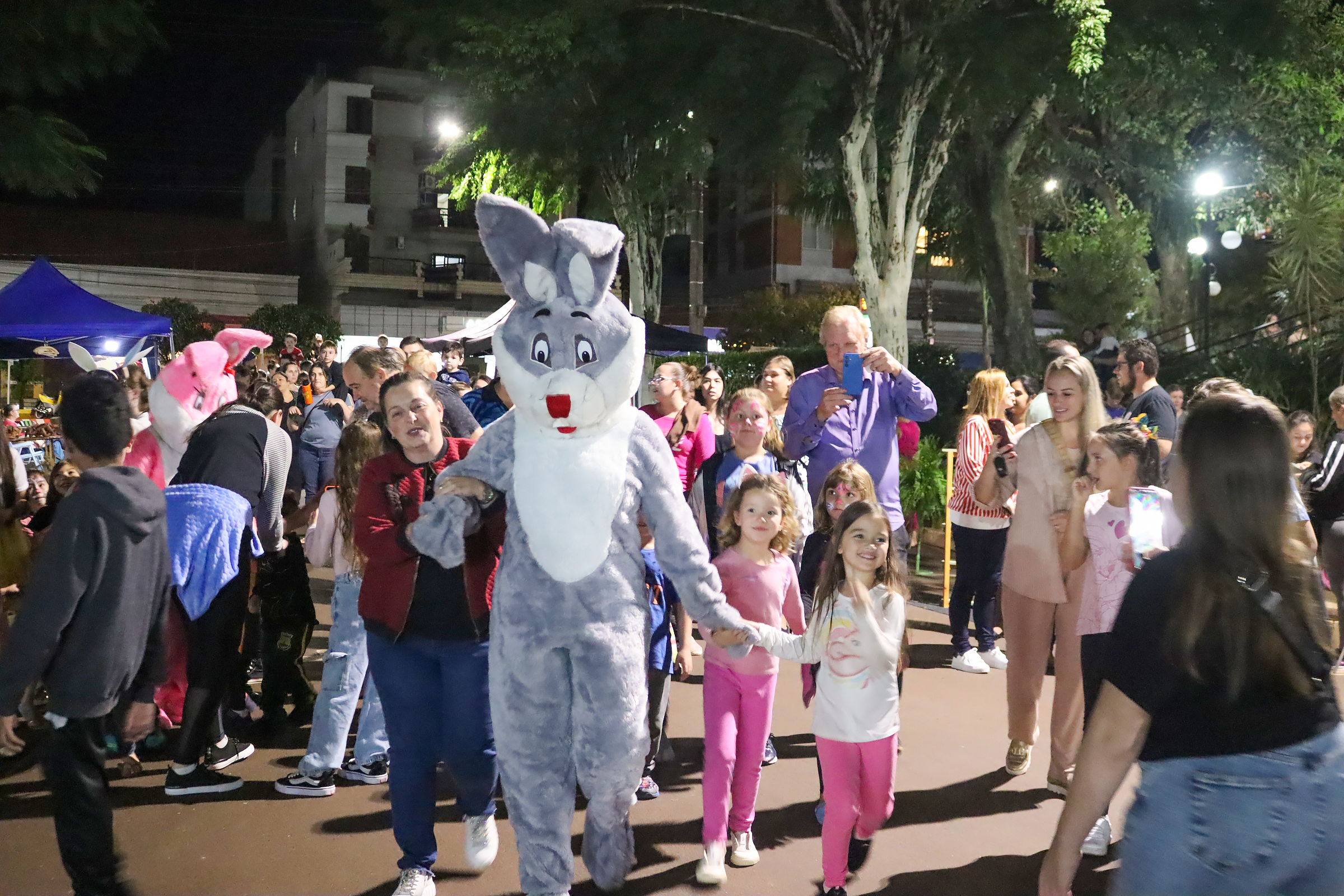 A cidade de Três de Maio viveu momentos de alegria, união e emoção com a chegada do Coelho da Páscoa, na segunda-feira, dia 14 de abril, em um evento especial promovido pelo Governo Municipal de Três de Maio, por meio da Secretaria de Cultura e Turismo e apoio da ACI/Sindilojas.