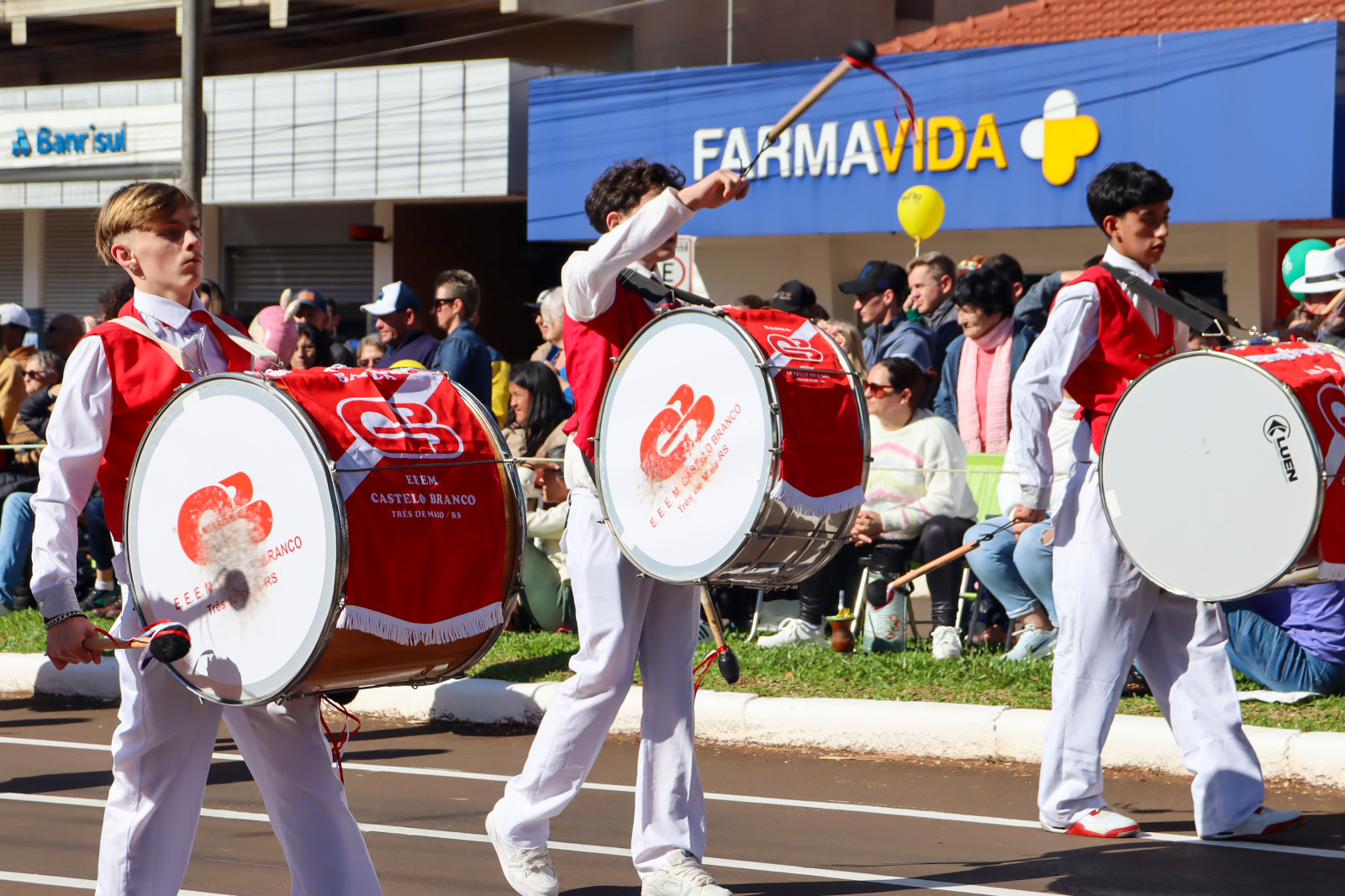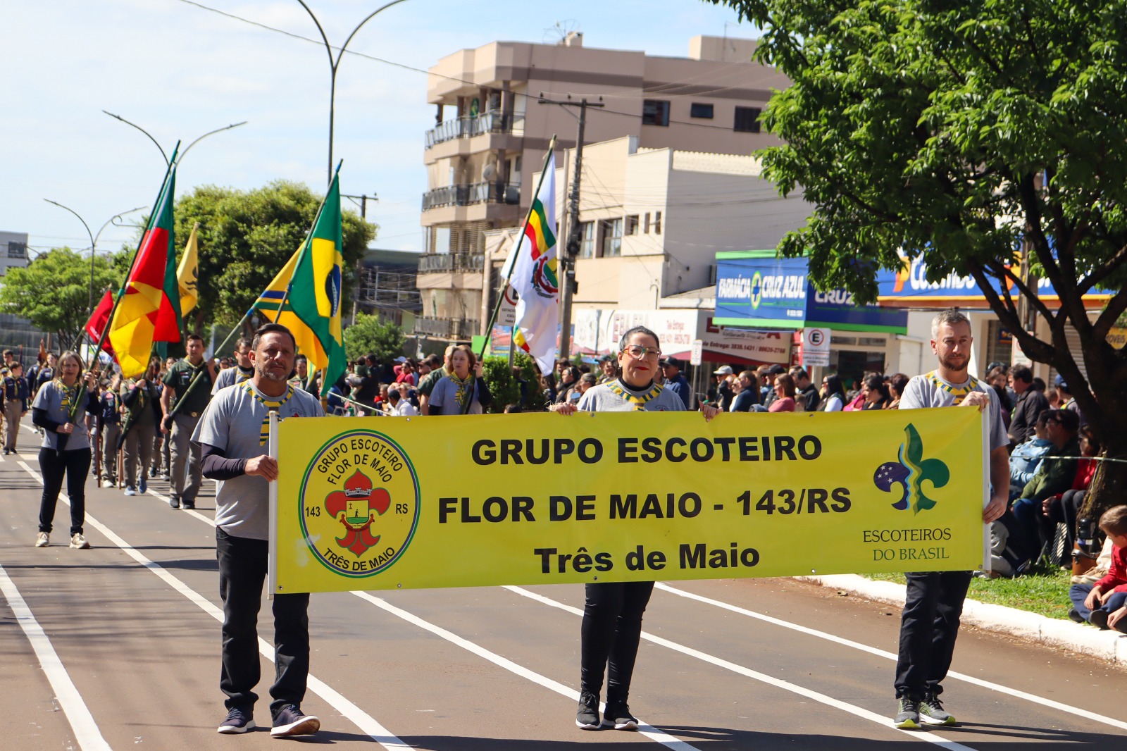 As cores verde, amarelo, azul e branco tomaram conta da Avenida Uruguai, reunindo famílias, estudantes, autoridades e visitantes. O desfile trouxe para a rua a diversidade cultural e social de Três de Maio, com a participação de escolas municipais, estaduais e particulares, APAE, entidades, clubes de serviço, escoteiros, Brigada Militar, Corpo de Bombeiros, Exército Brasileiro e bandas locais e convidadas. Cada grupo, ao seu modo, expressou a brasilidade e a identidade três-maiense, unindo tradição, civismo e esperança no futuro.