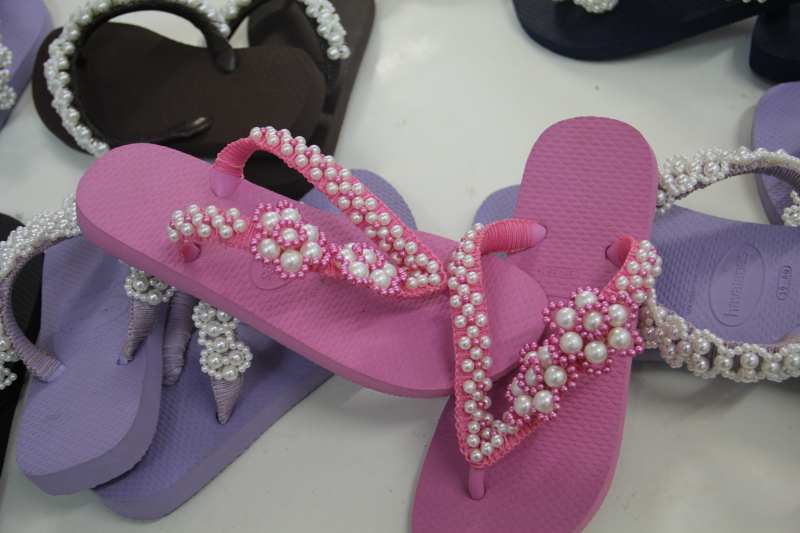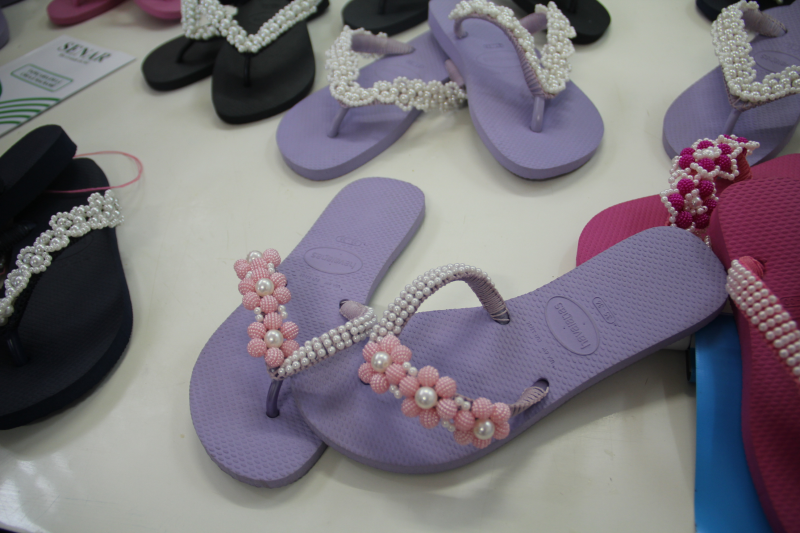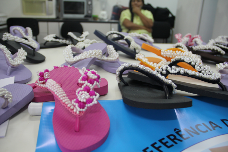 As artesãs optaram pelo macramê em chinelos, o famoso bordado em chinelos, onde cada participante pode confeccionar 2 chinelos. Todo o material para a atividade foi doado pela Secretaria de Desenvolvimento Social e as participantes puderam levar para casa os chinelos confeccionados.