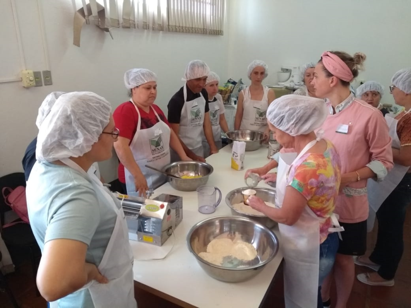 A oficina de panificação caseira aconteceu nos dias 6, 7 e 10 de dezembro e contou com 10 participantes inscritas. Acompanharam a realização do curso a instrutora do Senar Veridiana Marx e Assistente Social do CRAS, Carla Sonza.