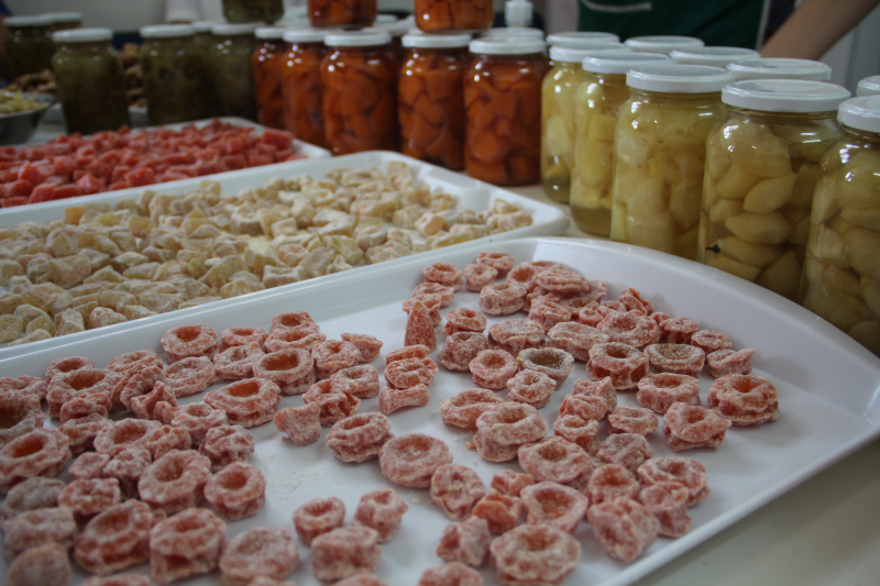 Durante os três dias de curso foram produzidos compotas de abóbora, batata doce e melancia, geleias de uva, abacaxi e maça, schimier de abóbora, banana e laranja, doces em caldas de abacaxi, pêssego e manga, além de doces cristalizados de batata, cenoura e abóbora.