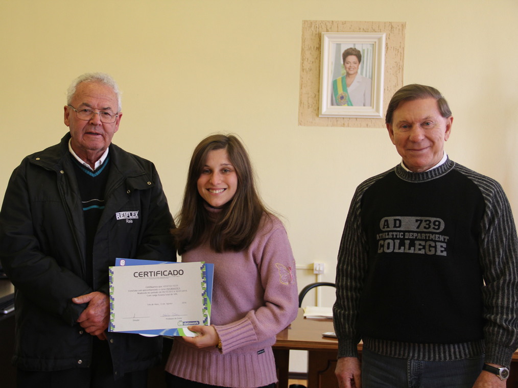 Também participaram do evento a vice-prefeita, Eliane Fischer; a secretária de Desenvolvimento Social, Miriam Schroeder; a assistente social, Arlete Dalpisol; a coordenadora do CRAS, Valmi Doege; o diretor da escola Datawork, Itamar Schuh e a professora de informática, Micheli Piton.