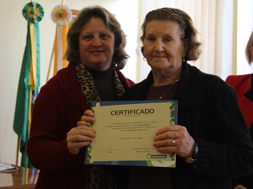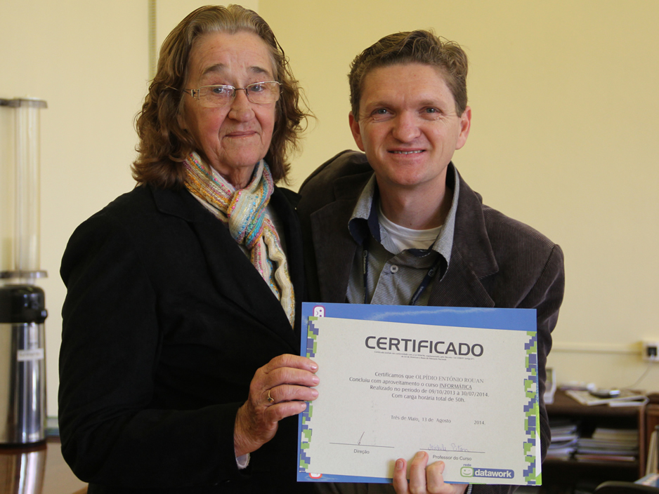 Na oportunidade, nove idosos receberam certificado e mimos. O curso é uma parceria entre a Datawork e a Prefeitura Municipal. As inscrições para novos cursos já estão abertas na Secretaria de Desenvolvimento Social e quem desejar pode se inscrever em dois módulos de aprendizagem.