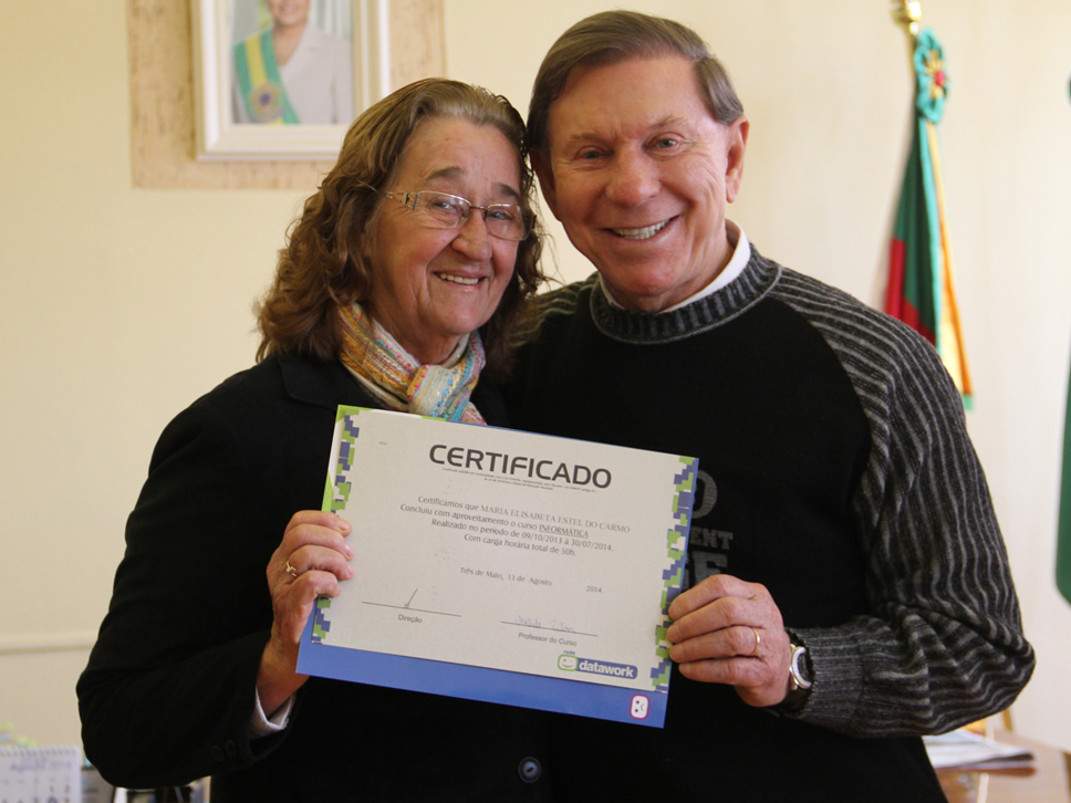 Na última semana, o prefeito municipal, Olívio José Casali participou da entrega dos diplomas de conclusão do curso de informática à turma de idosos da Secretaria de Desenvolvimento Social.