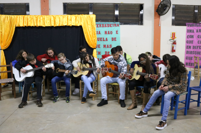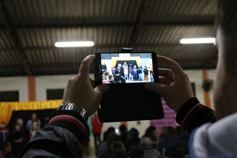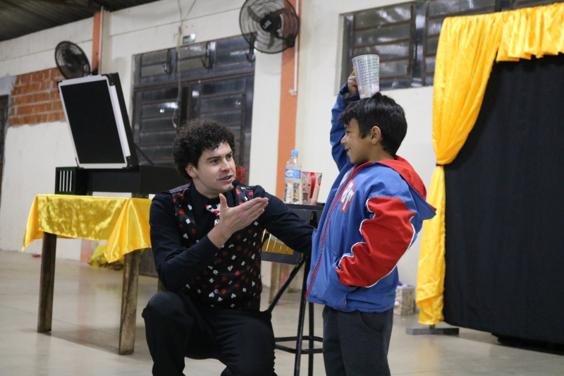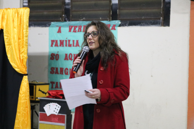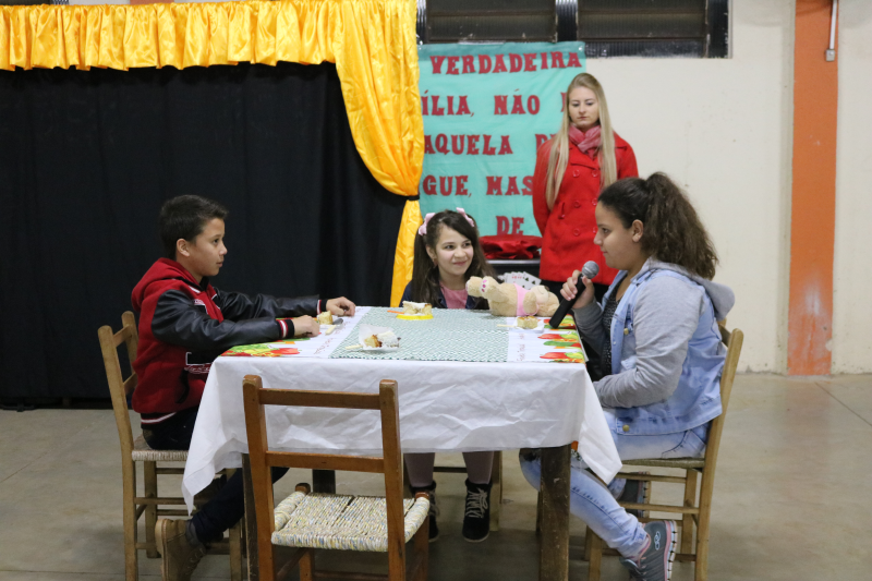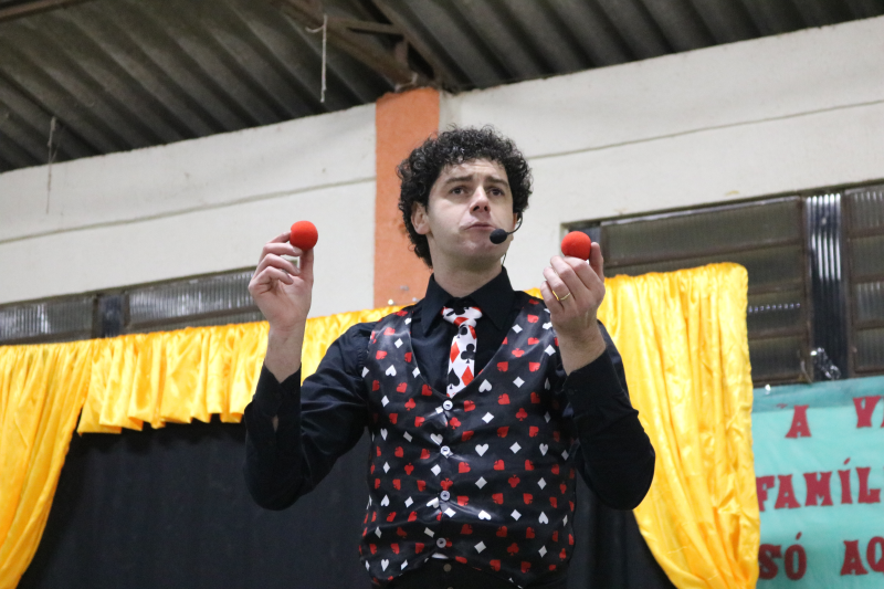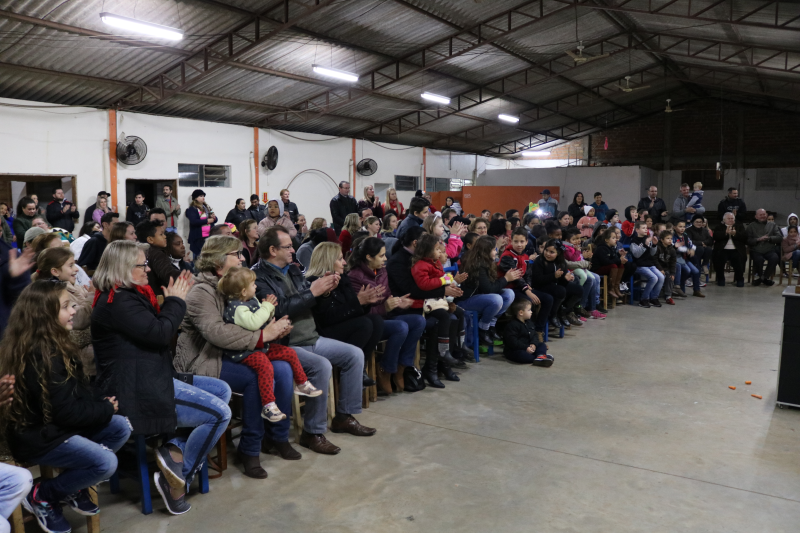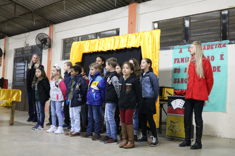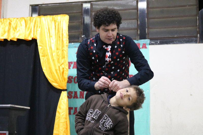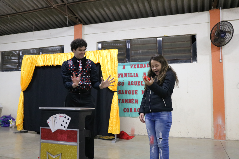 As famílias acompanharam apresentações de violão, teatro, canto e um espetáculo de mágica, encanto e magia com o mágico Rosimar Angst que deixou o público presente atento a cada mágica.