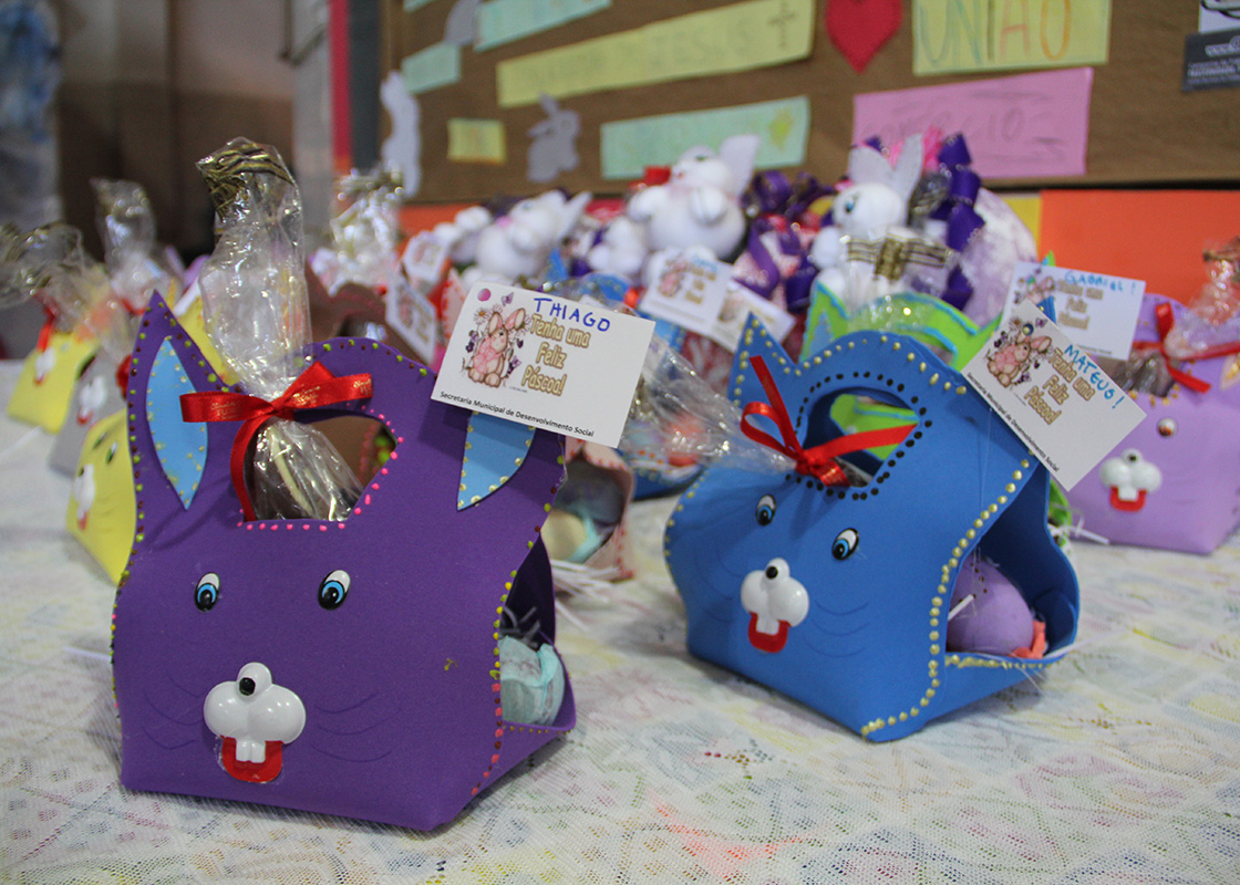 O coelhinho da Páscoa visitou cerca de 50 crianças e adolescentes que participam do Serviço de Convivência e Fortalecimento de Vínculos do Centro de Referência de Assistência Social (CRAS), entregando cestas e chocolates aos mesmos.