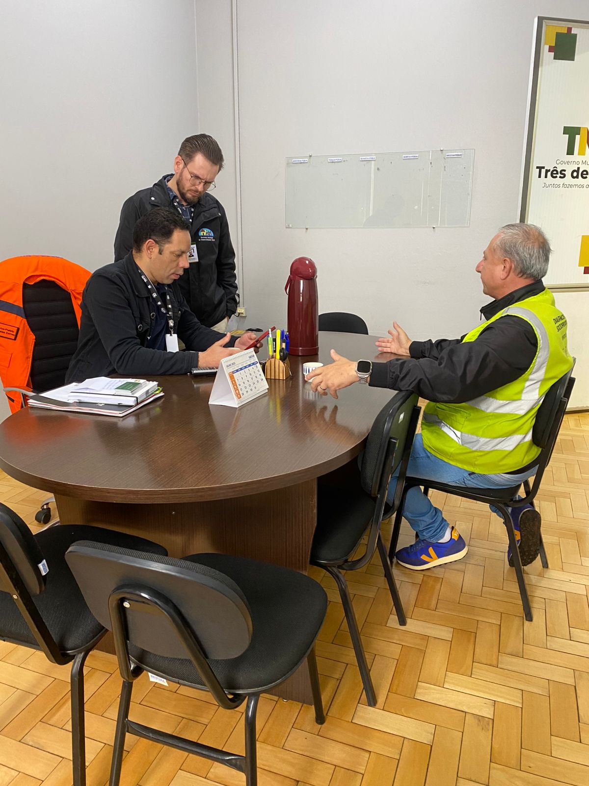 O agente Rodrigo Barbosa foi recepcionado pelo vice-prefeito em exercício de prefeito municipal, Josias Correa, acompanhado do secretário de Desenvolvimento Social e Habitação, Rafael Hartmann dos Santos.