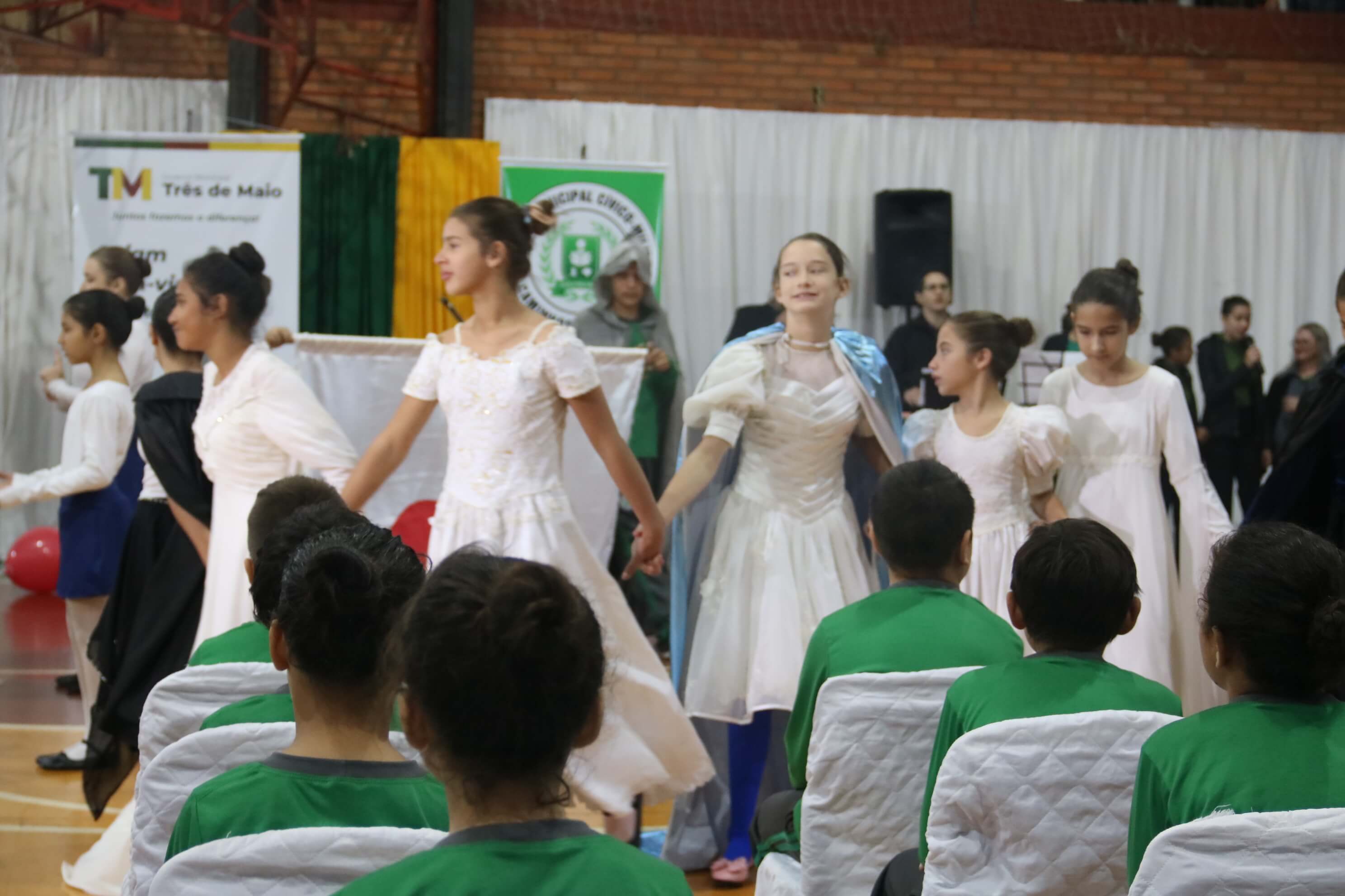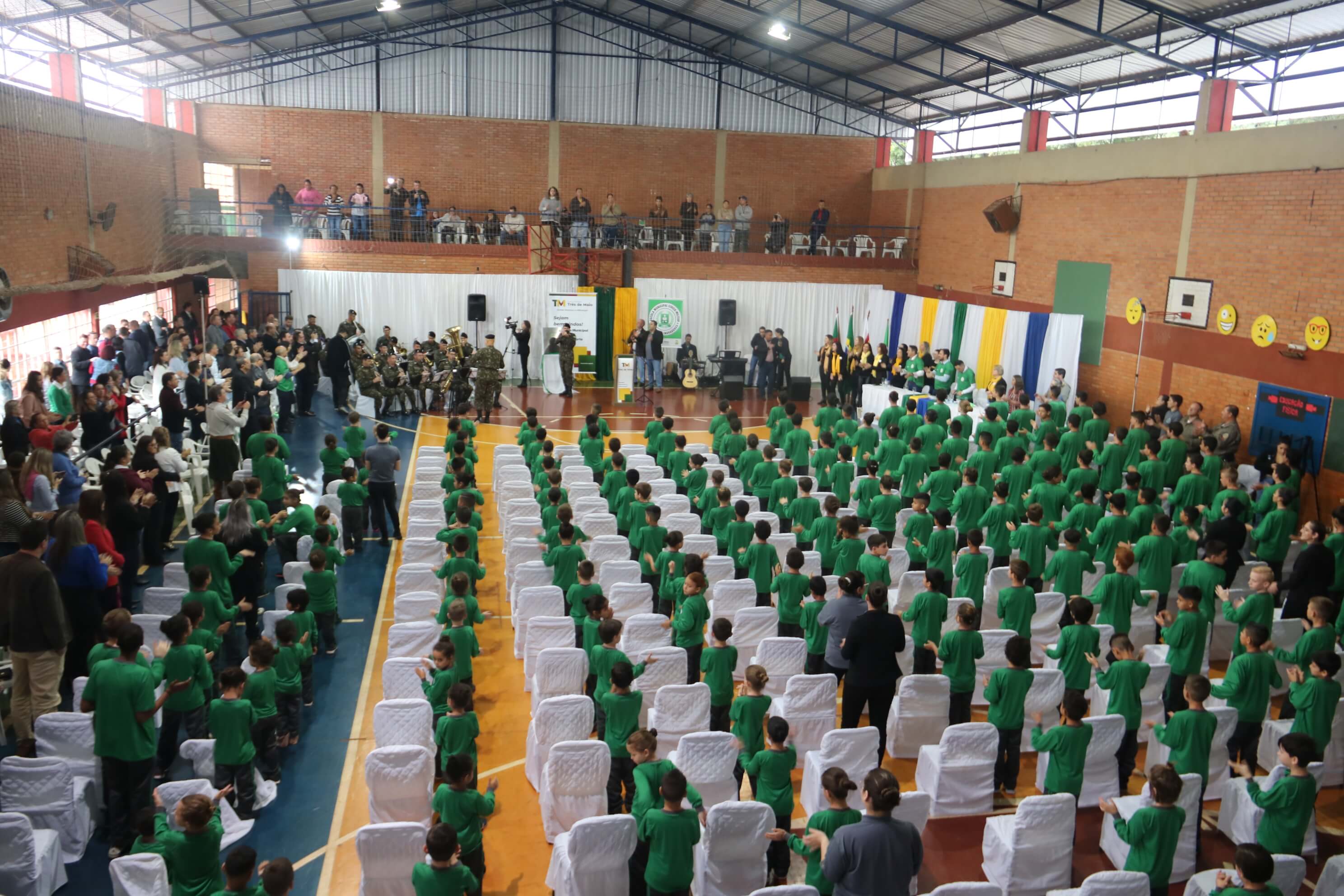 Os Hinos do Brasil, de Três de Maio e do Rio Grande do Sul, foram entoados pelos presentes ao som da Banda de Música do 1º Batalhão de Comunicações de Santo Ângelo.