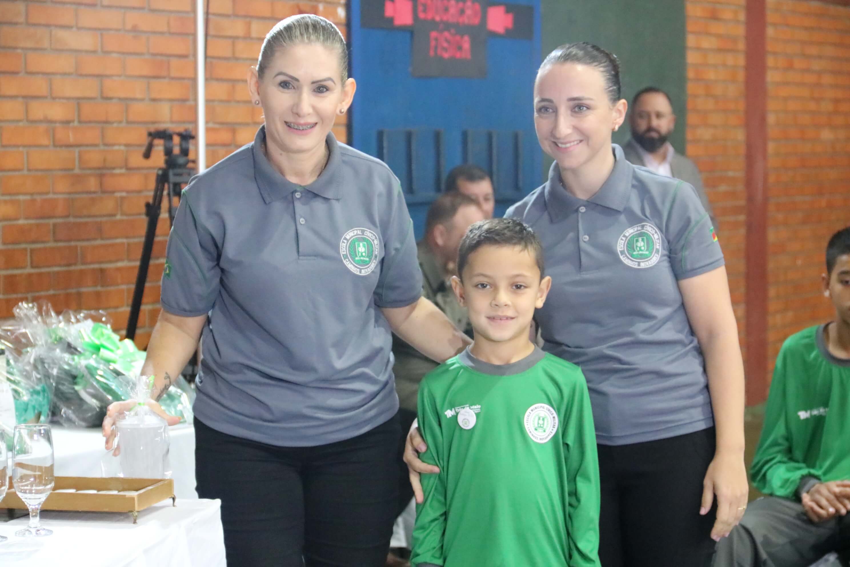 Na oportunidade, a Secretaria de Educação entregou um mimo ao ao comandante da Brigada Militar de Três de Maio, Celito Eduardo Albuquerque, ao soldado Michael Zdruikoski e ao Sargento Batista, que se fazem presentes diariamente na Escola ajudando no treinamento dos estudantes.
