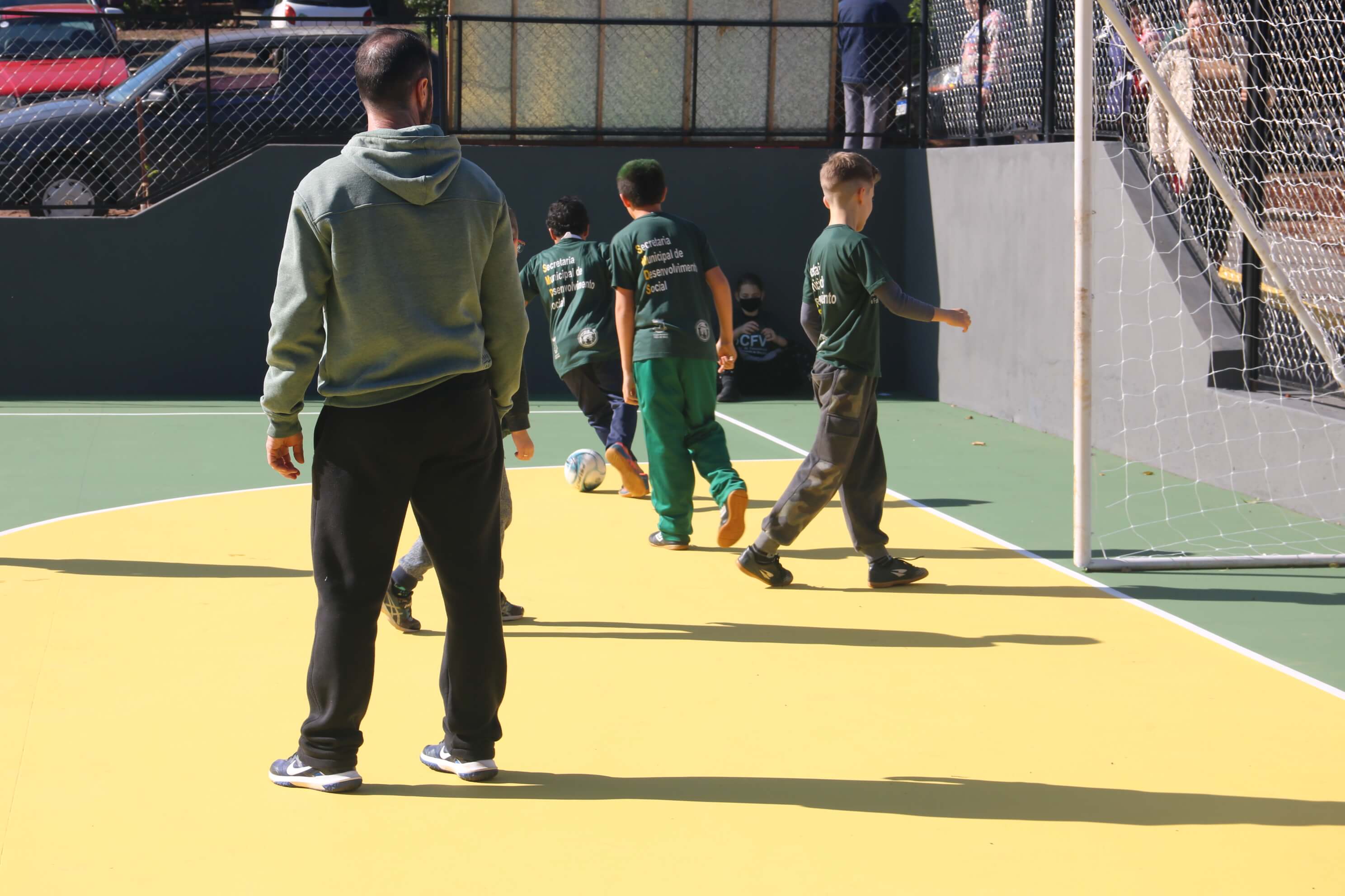 Na tarde de hoje, 13, a Secretaria de Educação, Cultura e Esporte, através do Departamento de Esportes, esteve realizando a reinauguração da quadra esportiva do Bairro Promorar.
