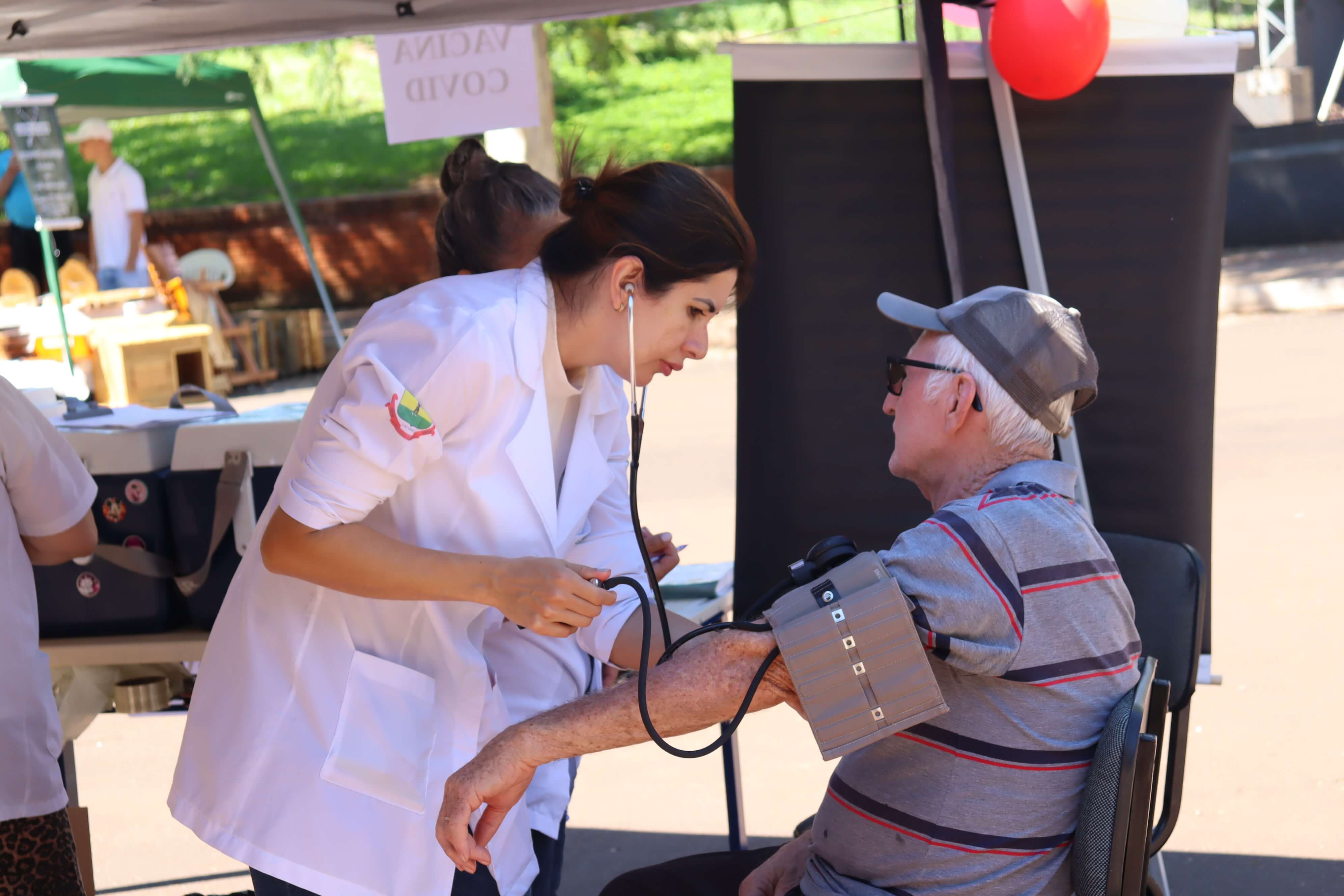A Secretaria de Saúde se fez presente no evento realizando aferição da pressão arterial, vacinas contra a Covid-19 e campanha de conscientização contra a dengue.
