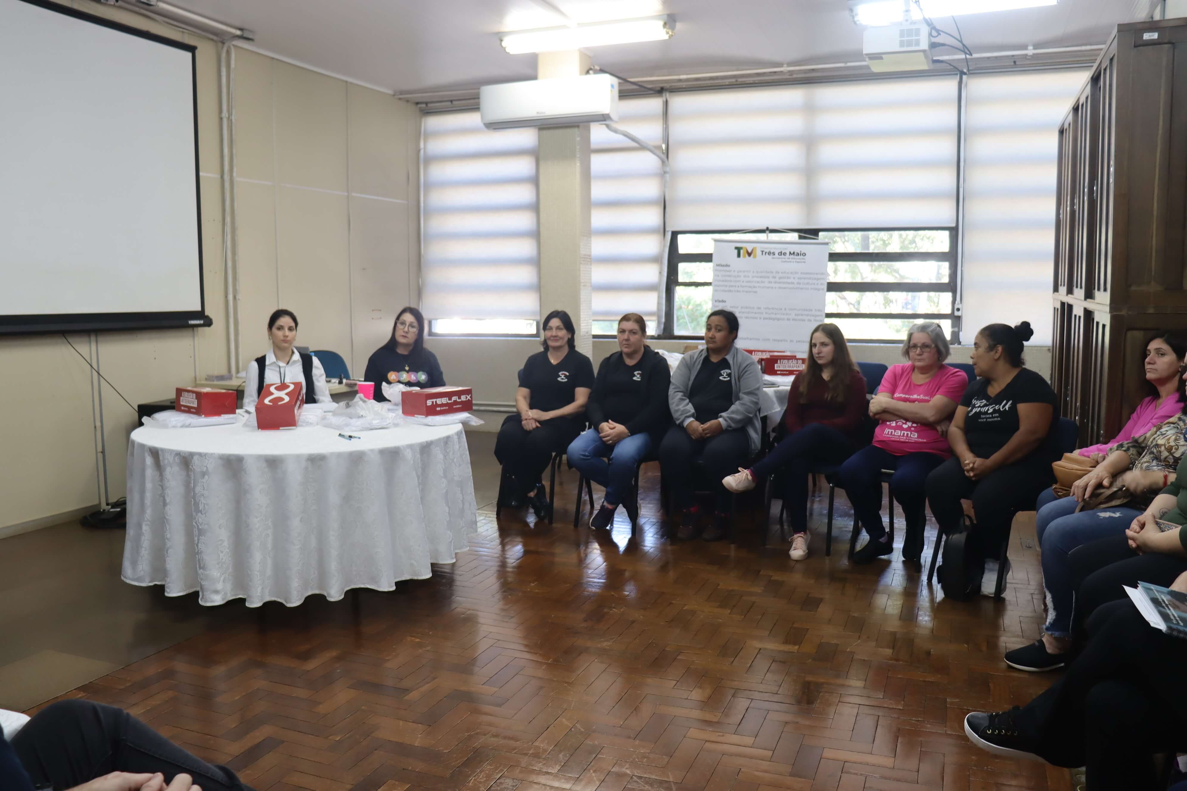 Receberam os conjuntos as cozinheiras das Escolas Municipais de Educação Infantil Mundo Mágico, Professora Anita, Tesouro das Acácias juntamente com sua extensão, São Mateus e sua extensão e Pequeno Príncipe.