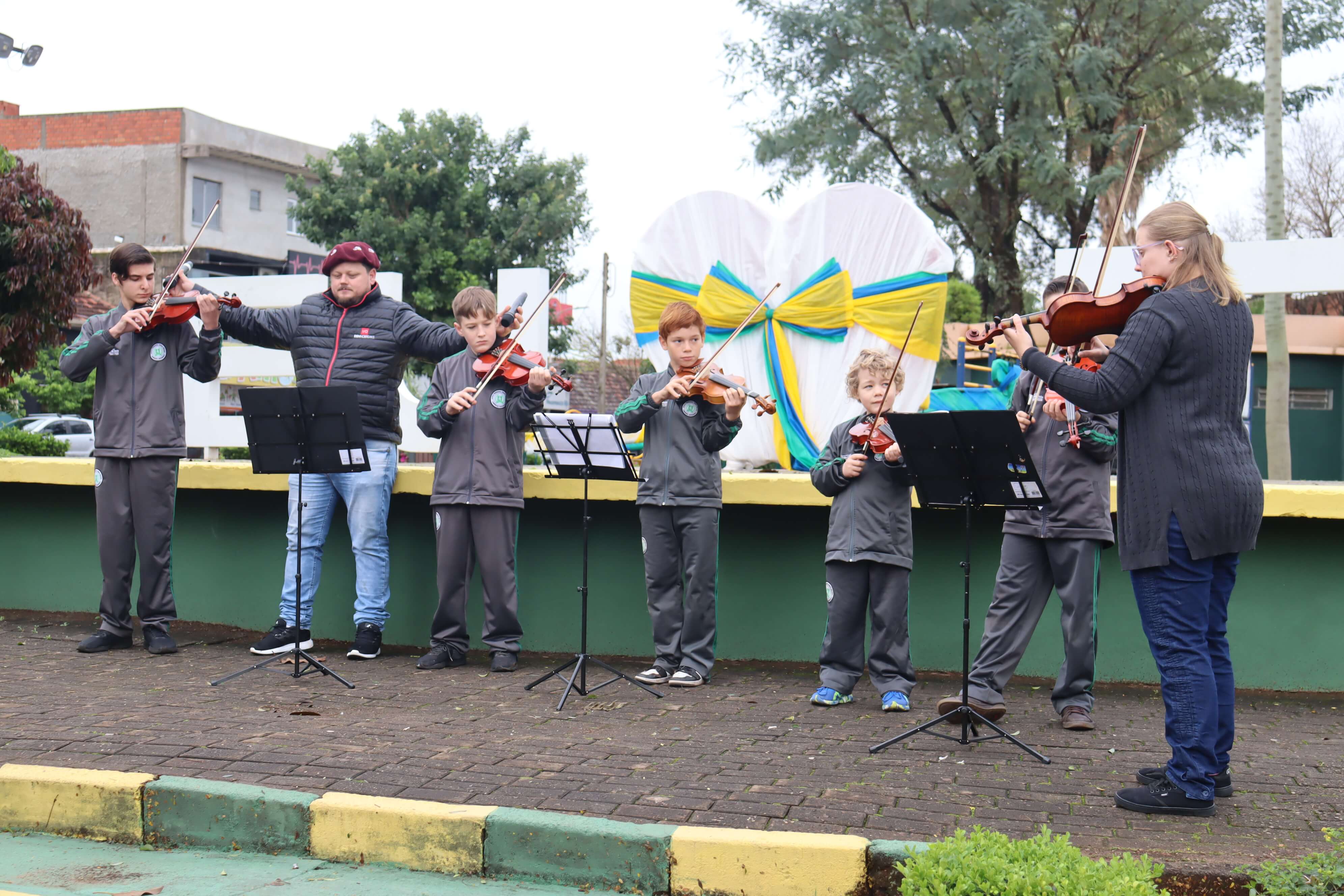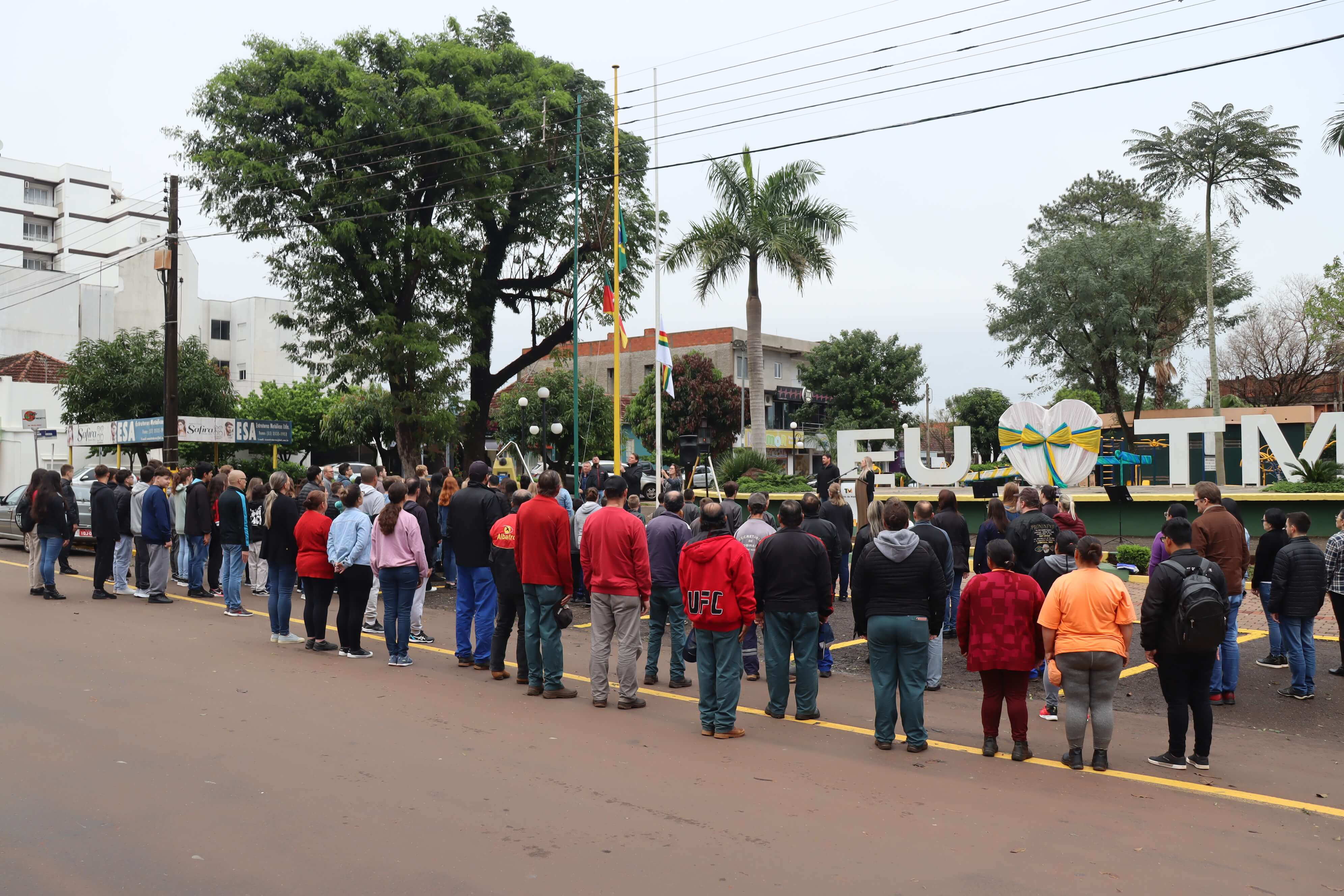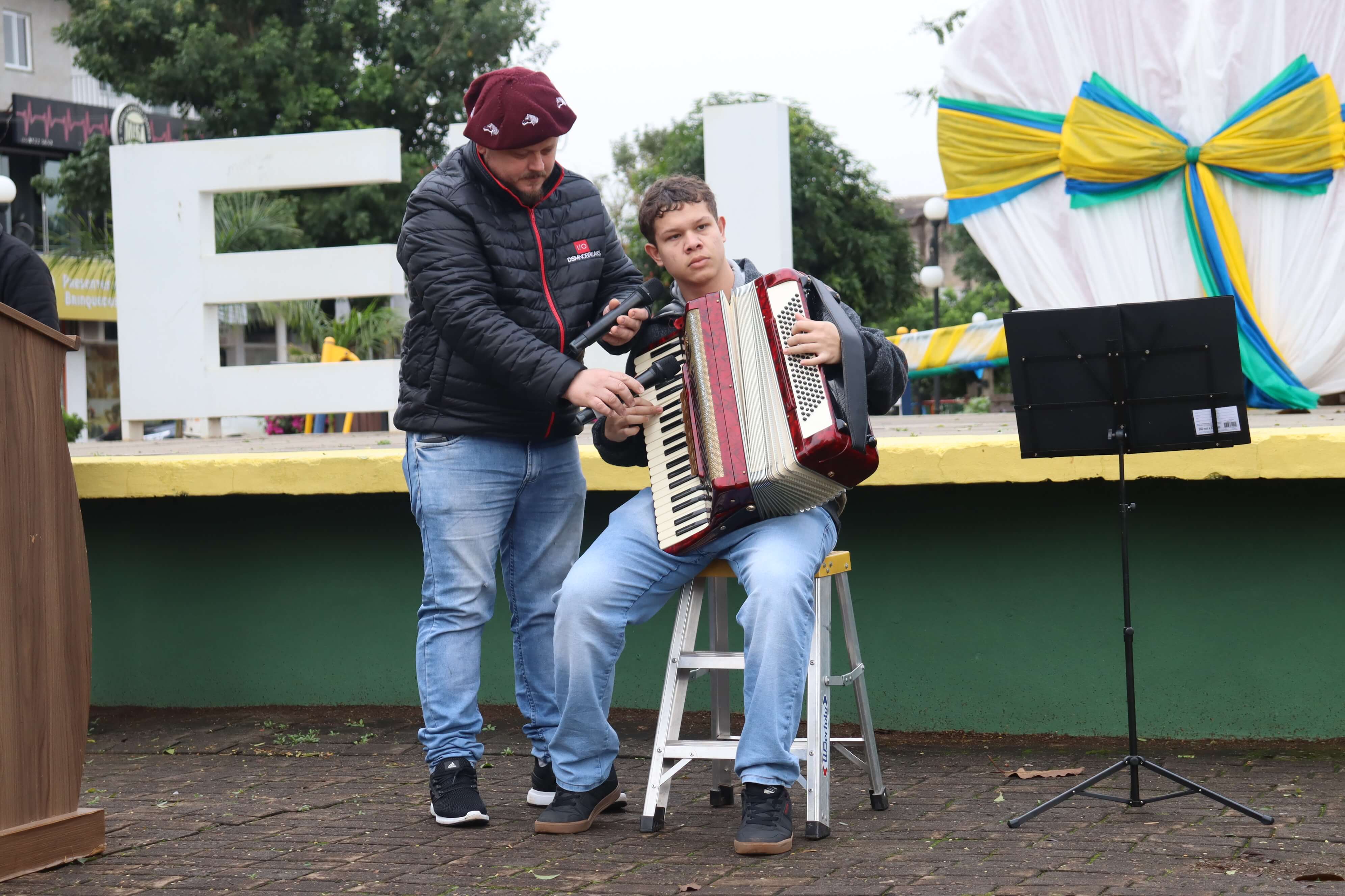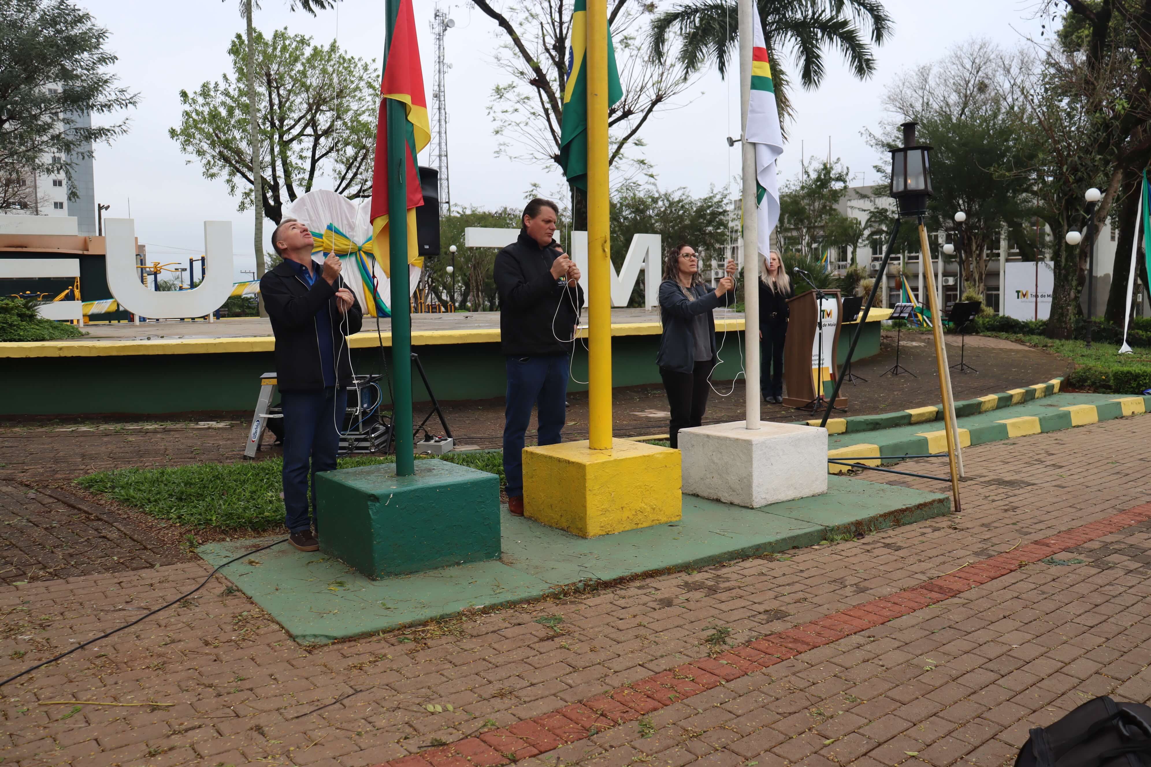 Na manhã de hoje ocorreu o hasteamento das bandeiras com apresentações artísticas a cargo da Escola Municipal Cívico-Militar Caminhos Inovadores, Instituto Estadual de Educação Cardeal Pacelli e a Secretaria de Obras.