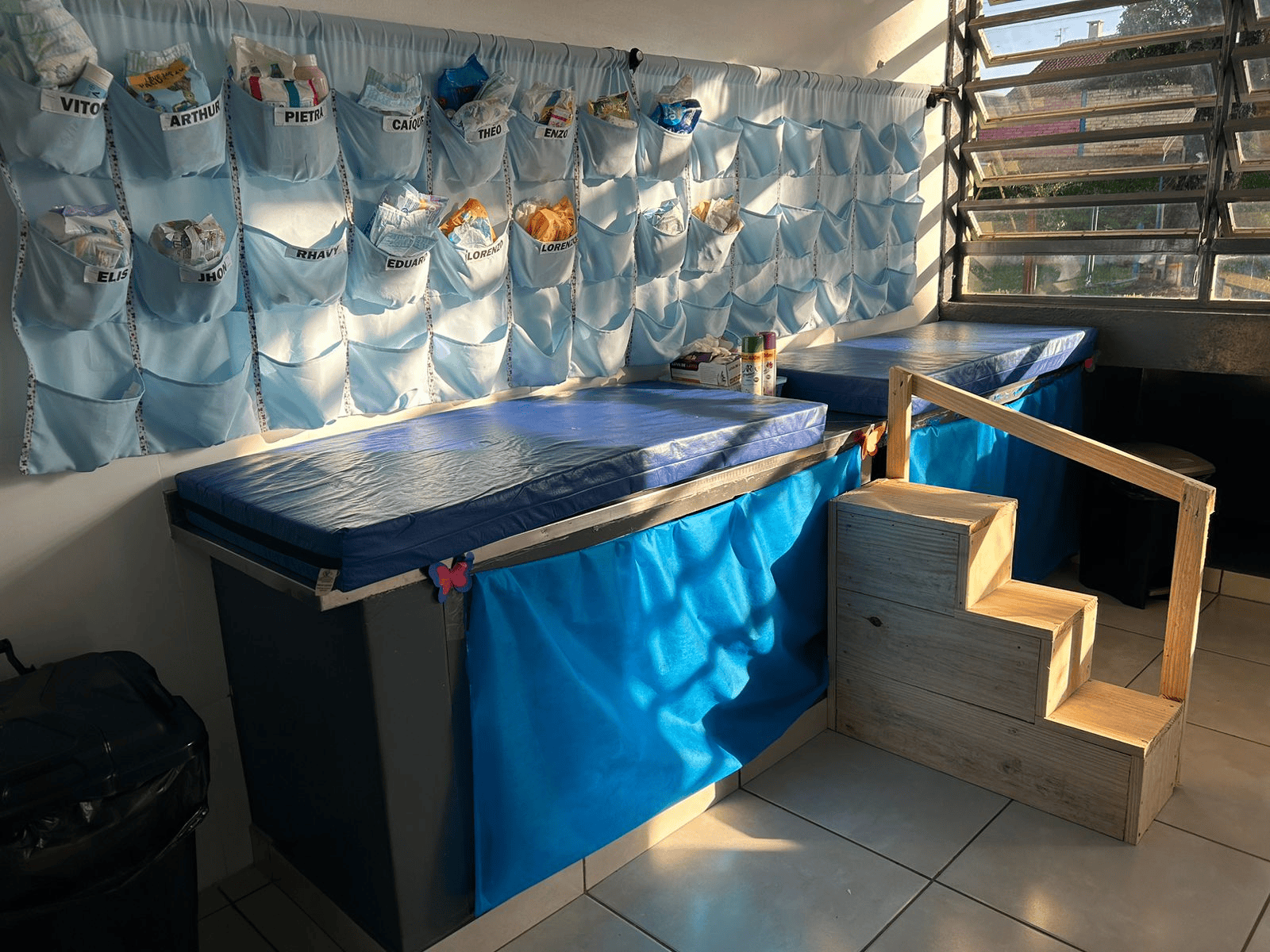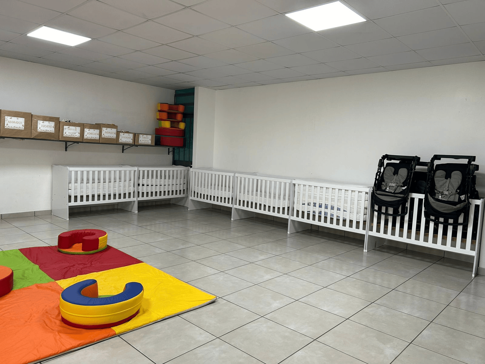 Essa mudança possibilita o atendimento de até 14 bebês, proporcionando um ambiente seguro e acolhedor, adequado para o desenvolvimento infantil, contendo cadeiras de alimentação, berços, colchões, trocadores e carrinhos de bebês.
