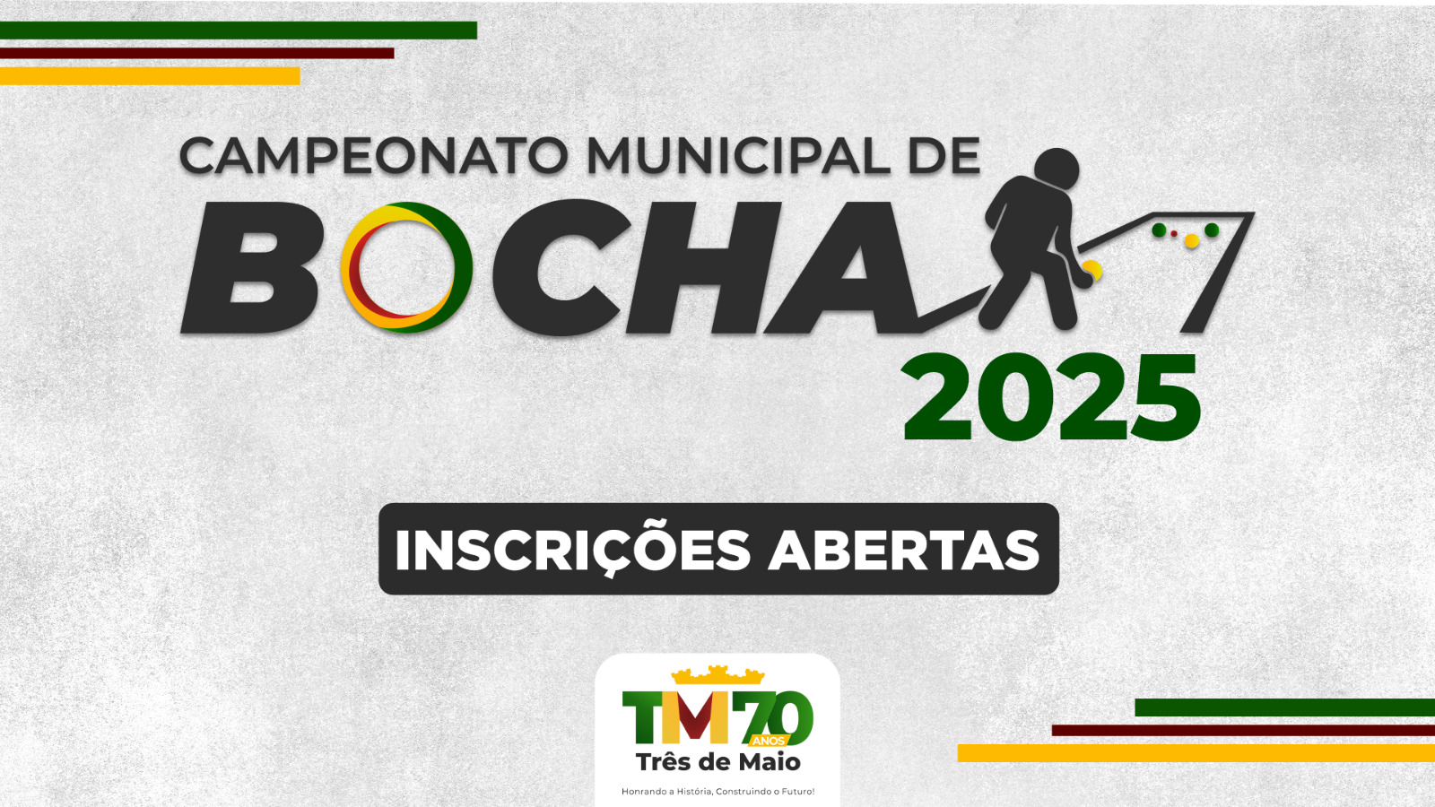 O Governo Municipal de Três de Maio, por meio da Secretaria de Esporte, Lazer e Juventude, informa que estão abertas as inscrições para as comunidades interessadas em participar do Campeonato Municipal de Bocha 2025.