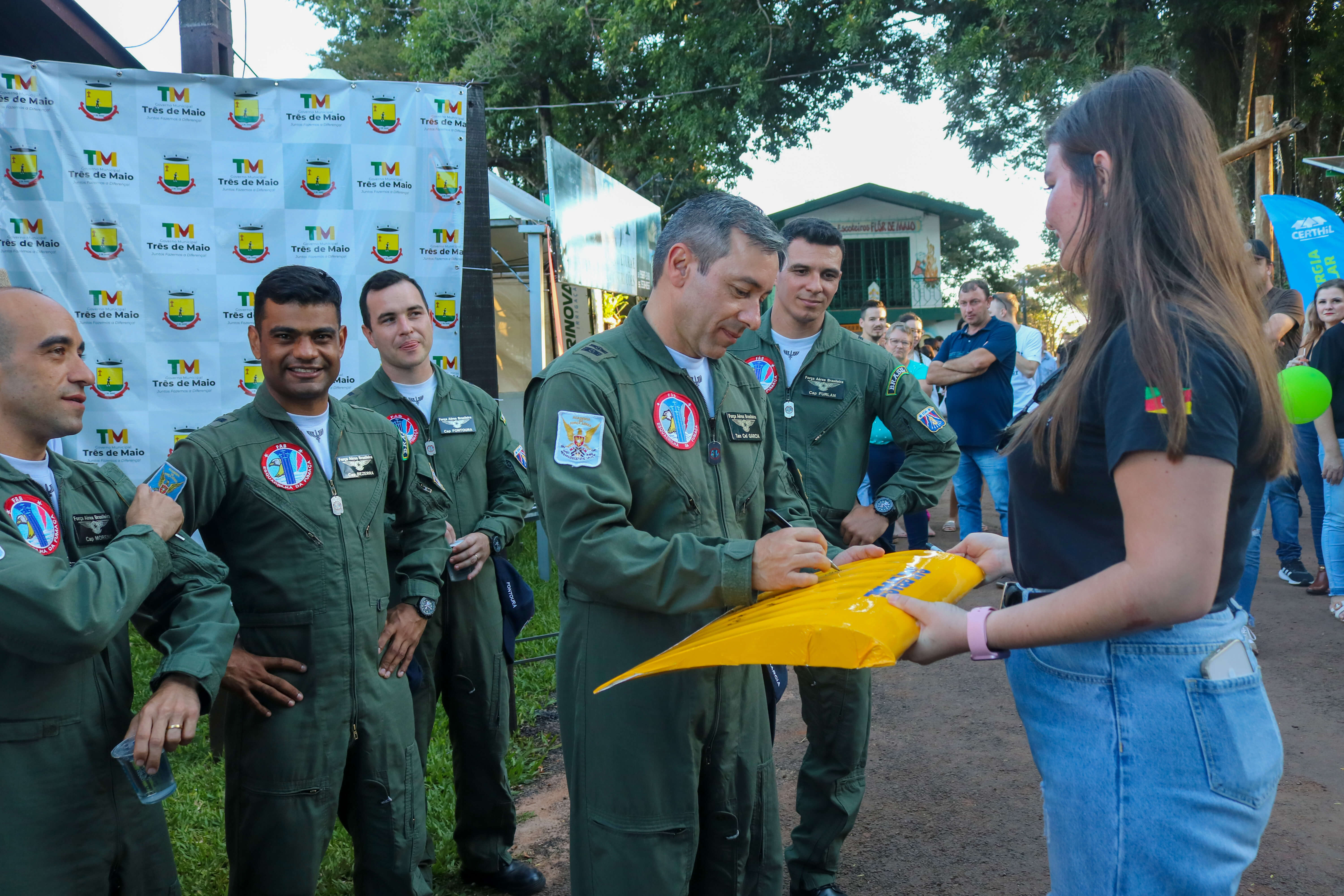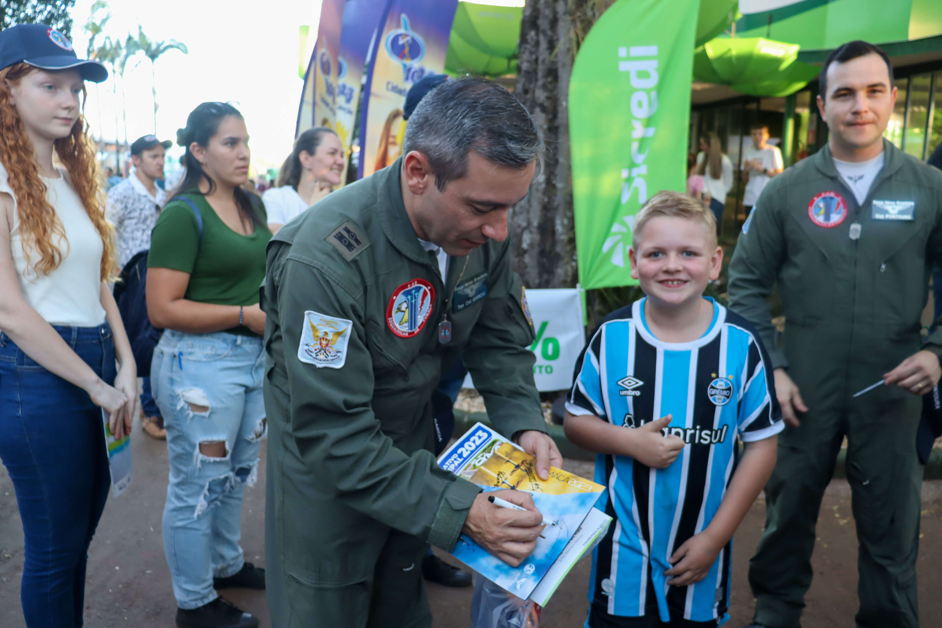 Após a demonstração aérea os pilotos compareceram na Expofeira 2023 para tirar fotos com o público, dar autógrafos e falar mais sobre o Esquadrão de Demonstração Aérea.