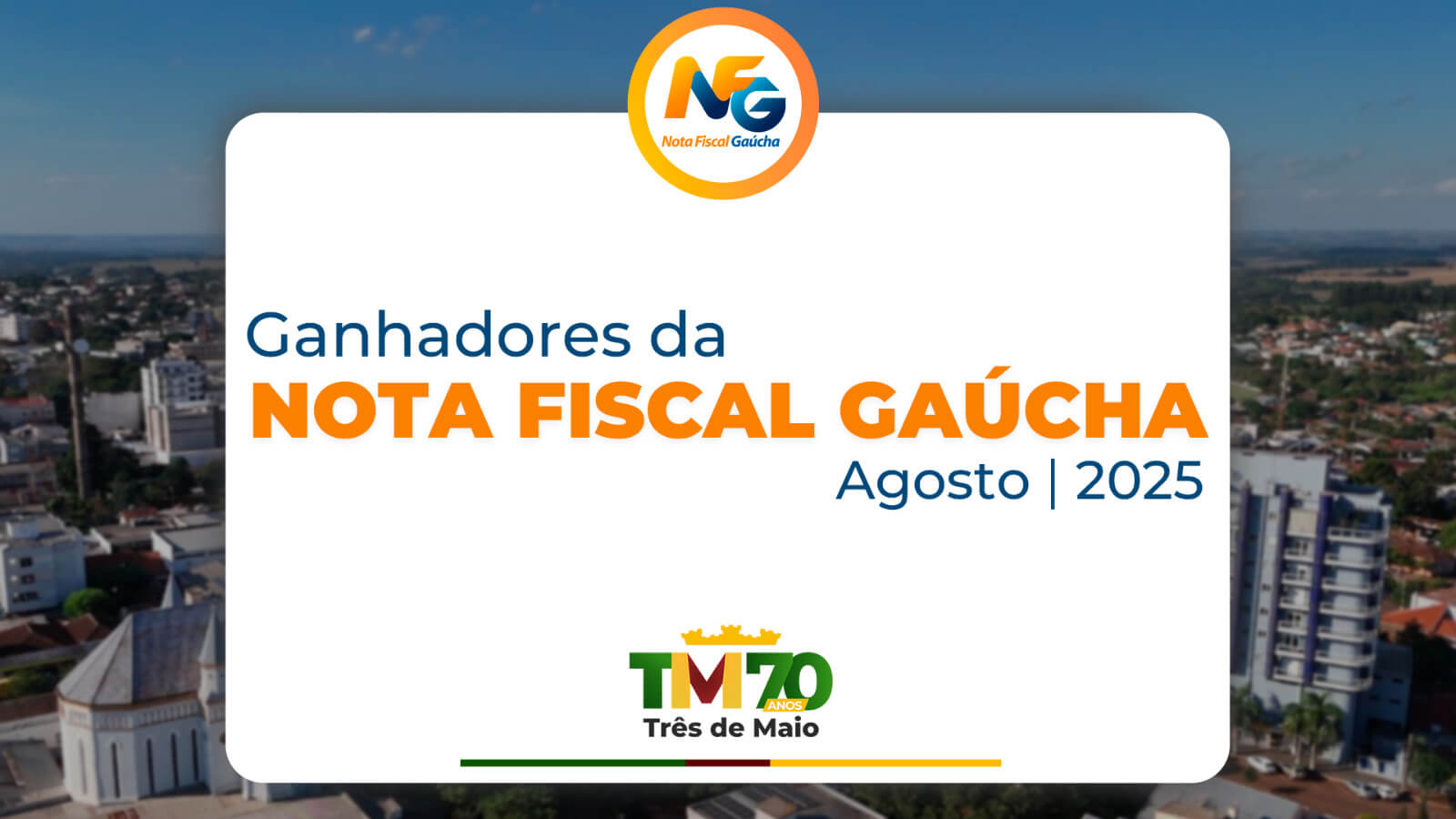 O Governo Municipal de Três de Maio informa que a Secretaria da Fazenda do Estado do Rio Grande do Sul realizou mais um sorteio do programa Nota Fiscal Gaúcha (NFG), que mensalmente contempla consumidores do município com prêmios em dinheiro.