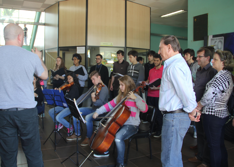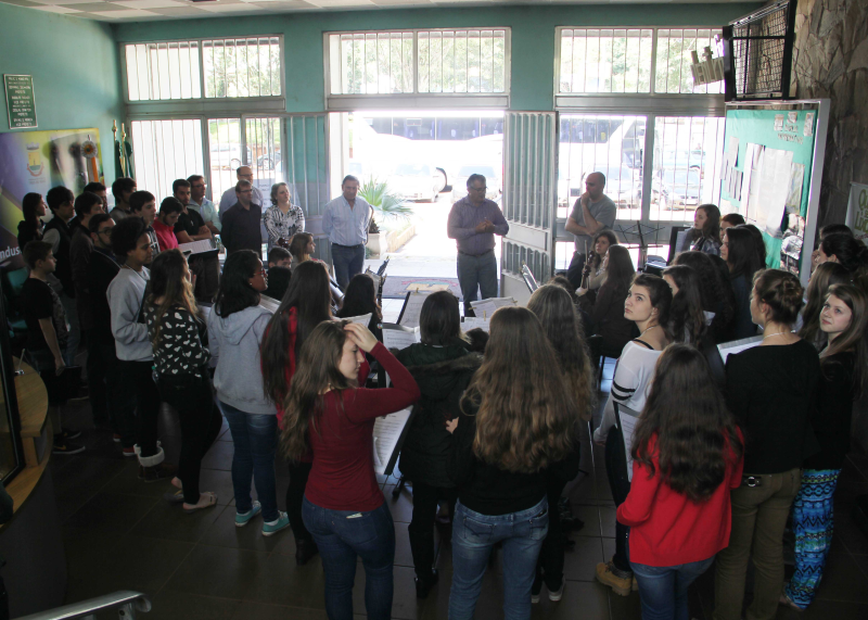 Na manhã de hoje, 16, o coral do Instituto de Educação Ivoti compareceu ao Palácio Municipal Walter Ullmann e realizou uma belíssima apresentação, sob a regência do maestro Irving Feldens.
