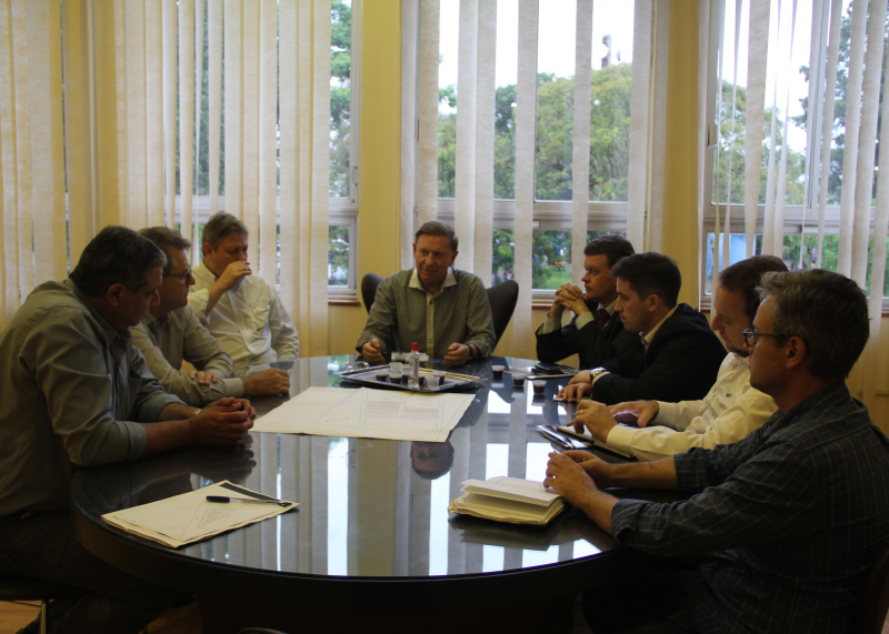 Na tarde de ontem, 10, o prefeito municipal, Olívio José Casali, acompanhado do secretário de Planejamento, Leonardo Casali, do secretário de Habitação e Urbanismo, Moacir Carvalho, e do procurador geral do município, Jorge Wächter, recebeu no gabinete municipal o superintendente executivo da Caixa Econômica Federal de Passo Fundo, Lúcio Roberto Hackenhaar e o gerente de clientes e negócios, Guilherme Bilibio, acompanhados do gerente da Caixa Econômica Federal de Três de Maio, Nelson Pedro Führ.