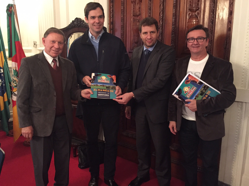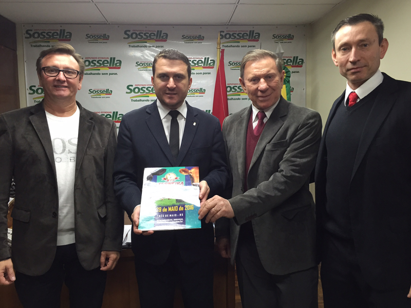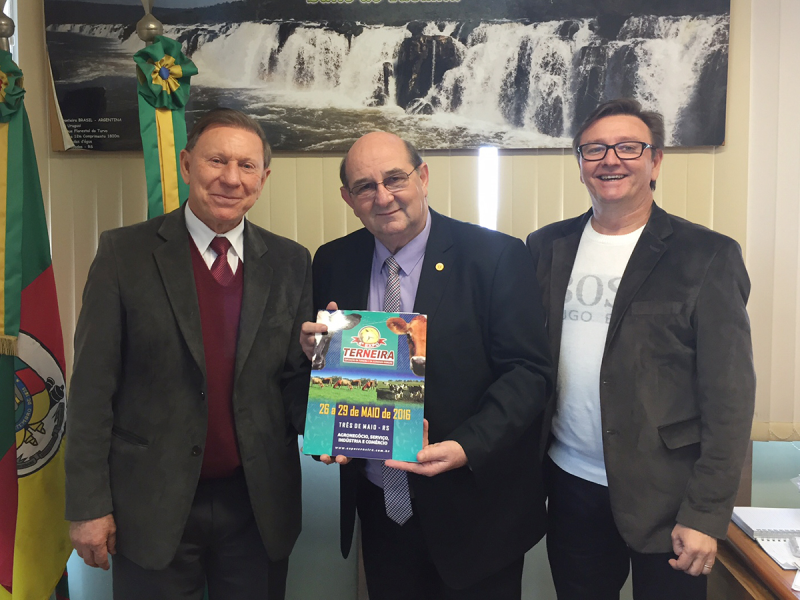 Com os deputados estaduais, Aloísio Classmann e Gilmar Sossella, o prefeito confirmou a audiência pública e palestra, que serão realizadas, no dia 27 de maio, na 4ª Expoterneira, que ocorre no Parque de Exposições Germano Dockhorn.