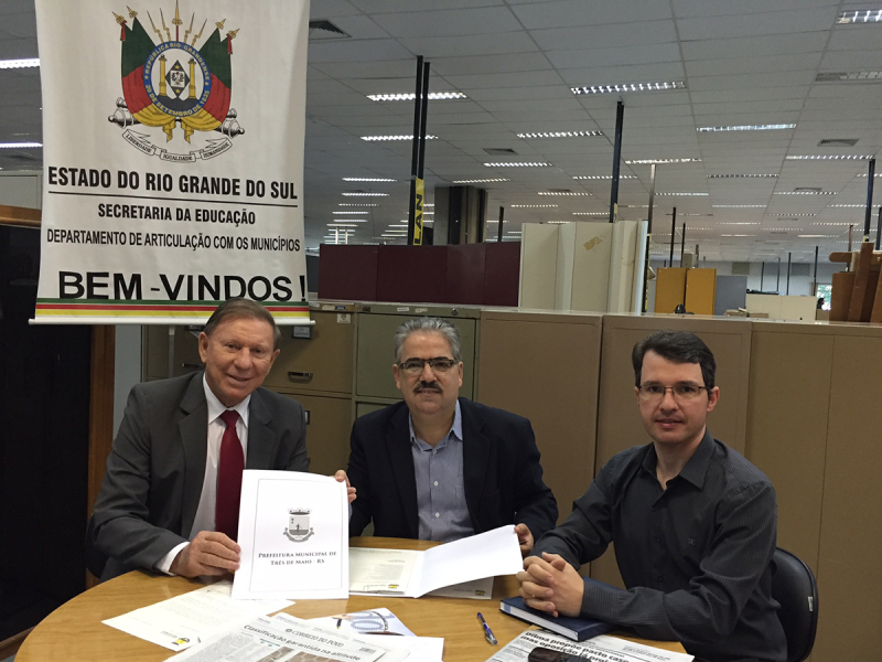 Nesta semana, o prefeito municipal, Olívio José Casali, e o Chefe de Gabinete, Leandro Maehler, estiveram em Porto Alegre, encaminhando diversos pleitos para o município de Três de Maio.