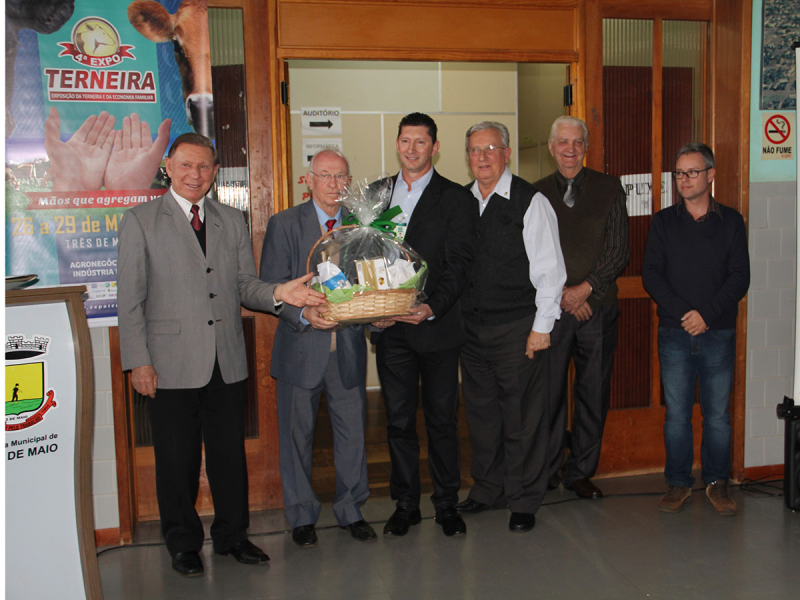 Após, o presidente da Cotrimaio, Silceu Dalberto fez a entrega de um mimo em forma de reconhecimento e agradecimento em prol dos serviços que Odacir Klein presta ao Rio Grande do Sul.
