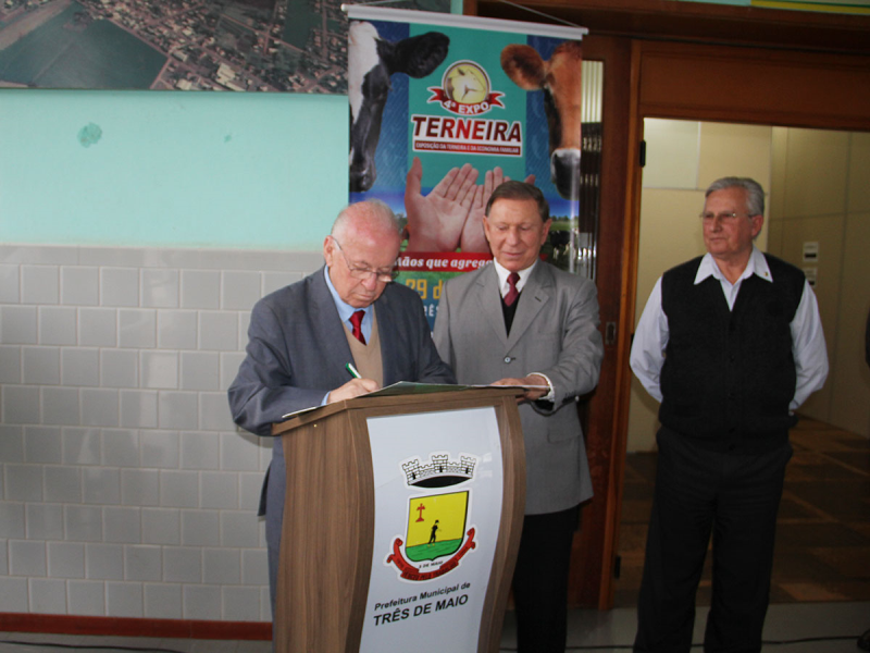 A solenidade foi realizada no Palácio Municipal Walter Ullmann, sendo a mesa oficial composta pelo prefeito municipal Olívio José Casali; presidente da Câmara de Vereadores, Luis José Lena; vice-presidente do BRDE, Odacir Klein, representando no ato também o governador José Ivo Sartori; secretário de Planejamento, Leonardo Carneiro Casali; secretário de Administração, João Seno Bach; secretário da Fazenda, João Paulo Rambo; Procurador do Município Jorge Luis Wachter; secretário de Desenvolvimento Econômico e Turismo, e interino da Agricultura, Dilson Mireski; além de vereadores, presidentes de entidades, cooperativas, gerentes de bancos, secretários, diretores e servidores municipais, Brigada Militar, Corpo de Bombeiros, Polícia Civil, Corsan, Emater, Clubes de Serviços, demais lideranças, imprensa e comunidade três-maiense.
