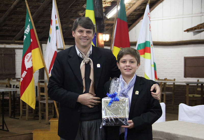 Na sequência, Ricardo Schuster entregou uma placa da 20ª Região Tradicionalista para Leônidas da Silva, 2º Piá Farroupilha do RS, do CTG Carreteiros do Horizonte e para Yasmin Reinehr, 2ª Prenda Mirim do RS, do CTG Tropeiros do Buricá, homenageando ambos por suas atividades na gestão de 2015/2016.