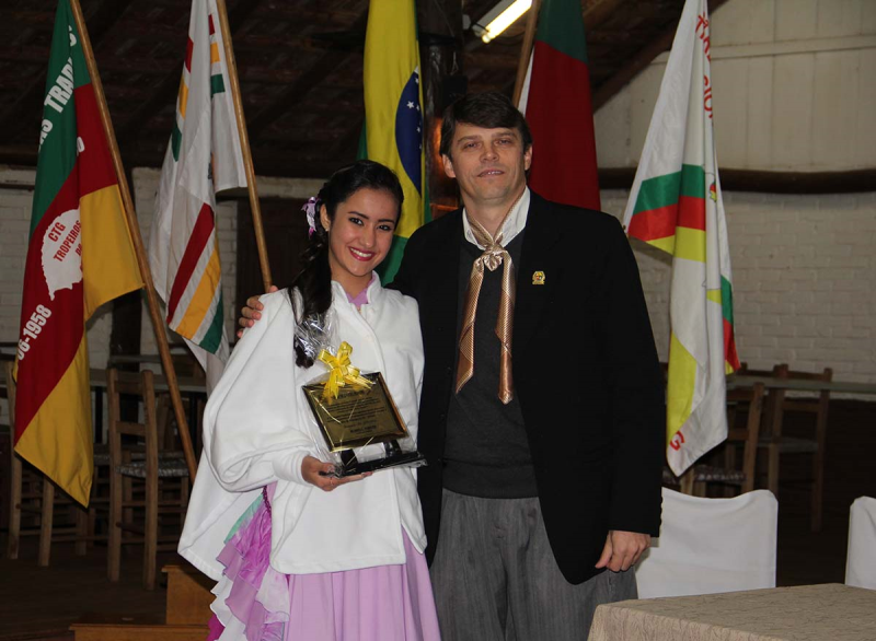 Aproveitando a oportunidade, o prefeito Casali realizou uma retrospectiva de Yasmin de Castro Reinehr na 45ª Ciranda de Prendas e lhe entregou o Decreto Municipal nº 038/2016 e o Prêmio Merecimento, troféu do Executivo Municipal, que reconhece entidades ou pessoas físicas por relevantes serviços ou feitos realizados para o desenvolvimento e engrandecimento do Município de Três de Maio, nos setores artístico, cultural, esportivo, artesanal, profissional, político, religioso, empresarial e/ou educacional. “Parabenizamos Yasmin pela conquista da faixa de 2ª Prenda Mirim do RS e por levar o nome de Três de Maio, do CTG Tropeiros do Buricá e da 20ª Região Tradicionalista nos eventos em que participou”, enfatiza.