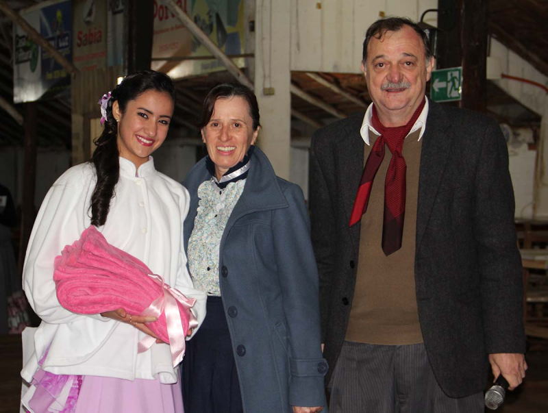 O patrão Chico também entregou um mimo para Yasmin e para seus pais, Dênis Reinehr e Alessandra de Castro Reinehr (ex-patroa do CTG Tropeiros do Buricá), e destacou que foi o responsável por introduzi-la no tradicionalismo.