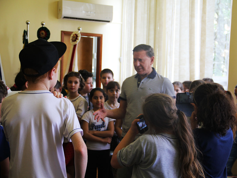 Durante a visita, Casali interagiu com os estudantes e contou a história do município, ressaltando que antigamente pertencia a Santa Rosa, e enfatizou que hoje Três de Maio é a Cidade Industrial do Leite. “Vocês são o nosso futuro, por isso, fico muito feliz que tenham interesse em conhecer a história dos municípios da região”, destaca.