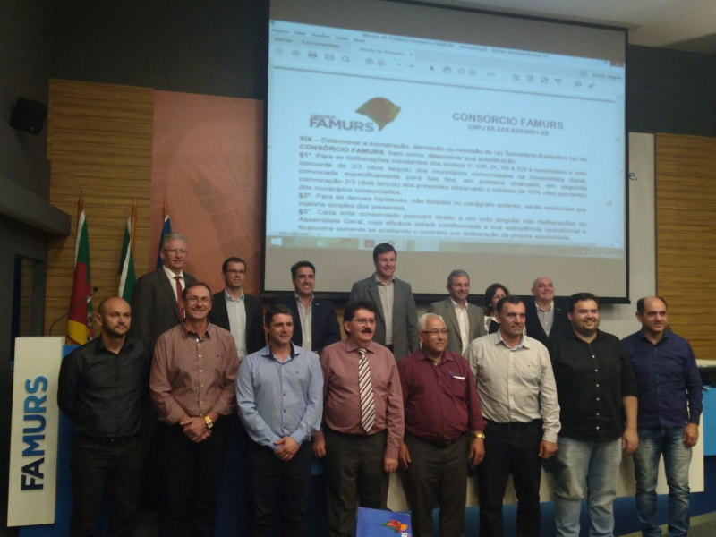 O prefeito de Três de Maio, Altair Copatti, foi escolhido 1º Secretário do Consórcio Estadual Federação das Associações de Municípios do Rio Grande do Sul (Famurs), definido em assembleia da entidade, no dia 8 deste mês. Na ocasião, os prefeitos ratificaram o protocolo de intenções de constituição da nova ferramenta que já tem a adesão de 34 prefeituras e beneficiará um milhão de pessoas. O presidente do Consórcio é o dirigente da Famurs, Salmo Dias de Oliveira.
