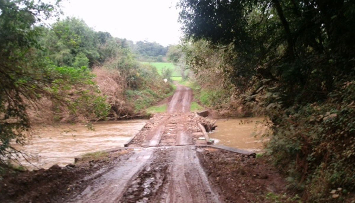 Entre os dias 22 e 29 de junho, as precipitações pluviais ultrapassaram os 350 mm em Três de Maio. Com as fortes chuvas, diversos foram os estragos ocasionados no município, principalmente na área rural.