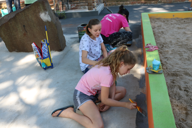Foram realizadas também podas nas árvores que cercam a quadra e a praça, plantio de flores e ervas medicinais (chás); limpeza e pintura dos banheiros, da quadra e dos brinquedos da pracinha; colocação de britas; construção de caixa de areia; melhorias na iluminação da quadra e praça e pintura de cordões nas ruas do bairro.