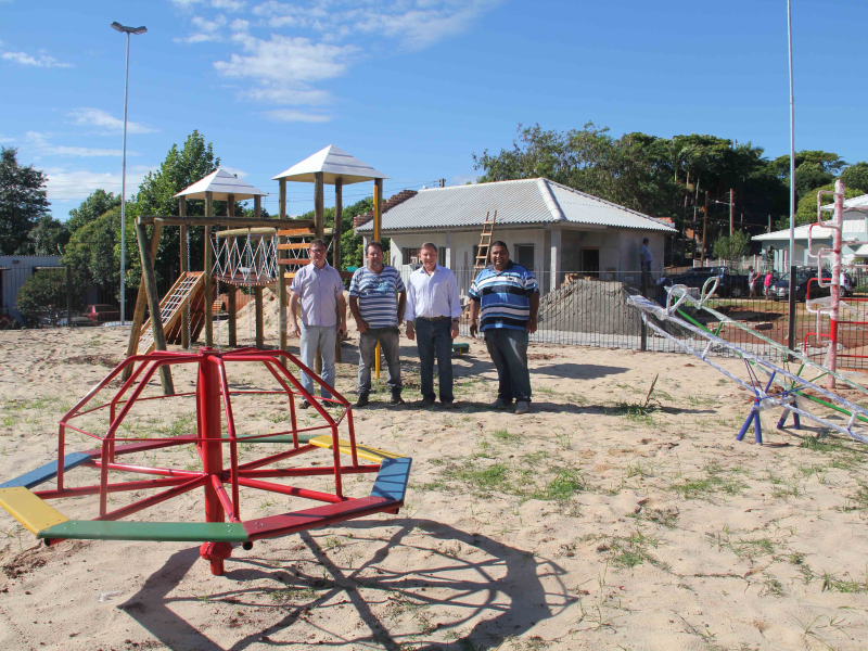 Nesta semana, o prefeito municipal, Olívio José Casali; o chefe de Gabinete, Leandro Maehler (Pato Roberto) e o coordenador de Obras Urbanas, Jonatan Jahn, estiveram acompanhado a obra da área de lazer no bairro Oriental.