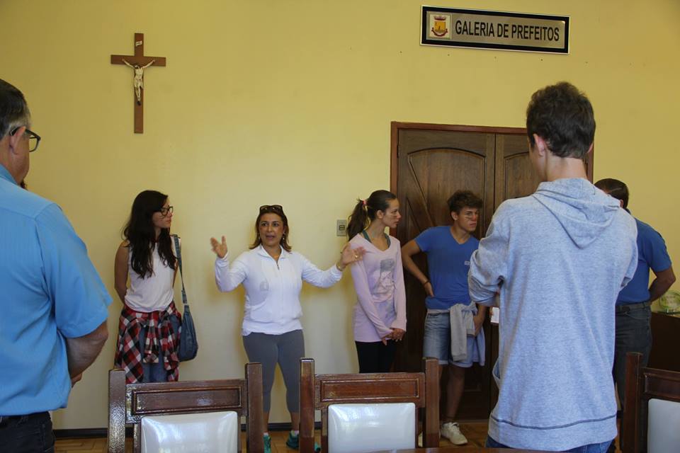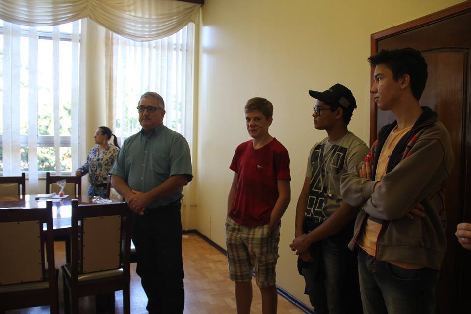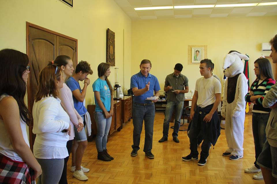 Na manhã quinta-feira, 2, o prefeito municipal Olívio José Casali, e o secretário de Educação, Cultura e Esporte, Ernani Moreira Rehn, receberam a visita de alunos do 2º ano do Ensino Médio da Escola Castelo Branco, acompanhados da professora Márcia Caramão.