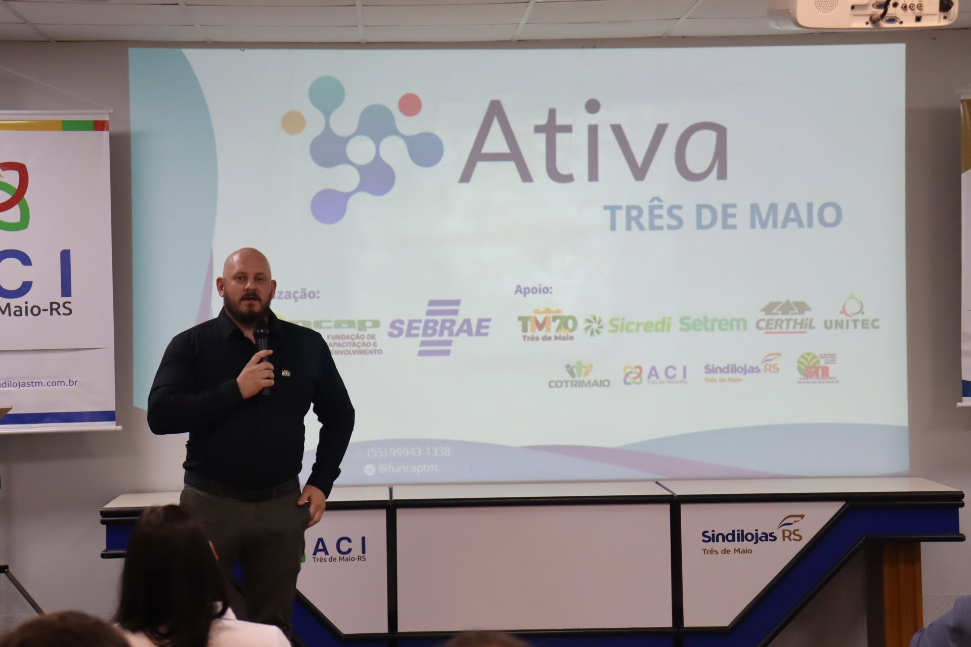 O Programa Ativa Três de Maio, realizado pela FUNCAP em parceria com o Sebrae, encerrou o ciclo 2025 com um encontro de integração entre os participantes e uma palestra inspiradora sobre cultura de inovação. O evento ocorreu no Centro Empresarial Sicredi ACI/Sindilojas, reunindo atores do setor público, setor produtivo, instituições de ensino e sociedade civil, as quatro hélices fundamentais para sustentar um ecossistema inovador no município.