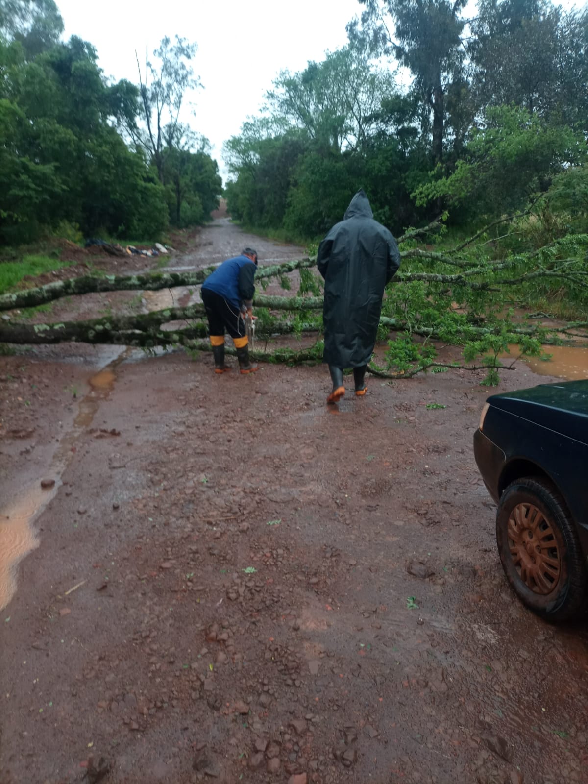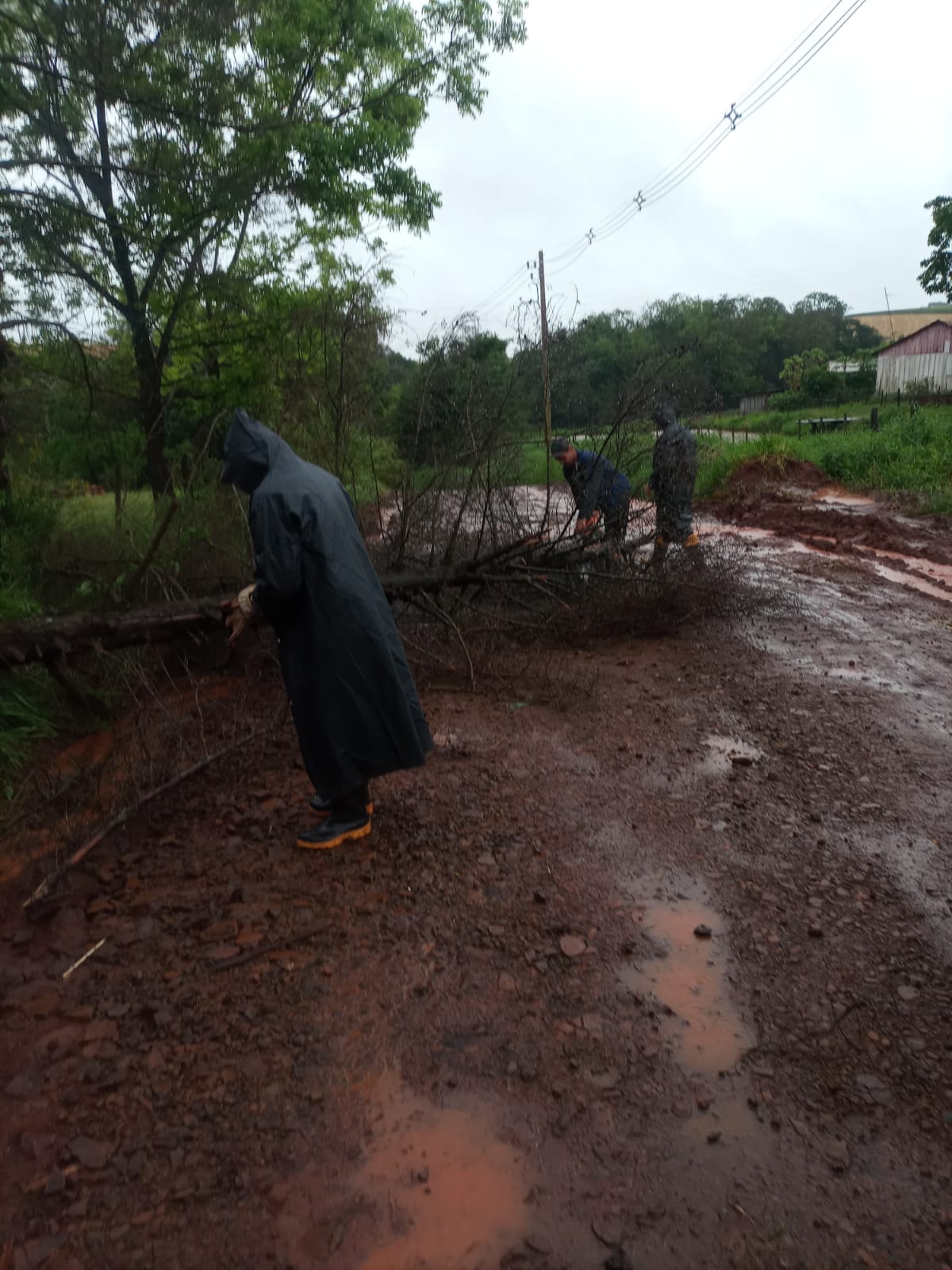 As fortes chuvas que atingiram o nosso município na noite de ontem ocasionaram a interrupção de estradas devido a queda de árvores no interior de Três de Maio.