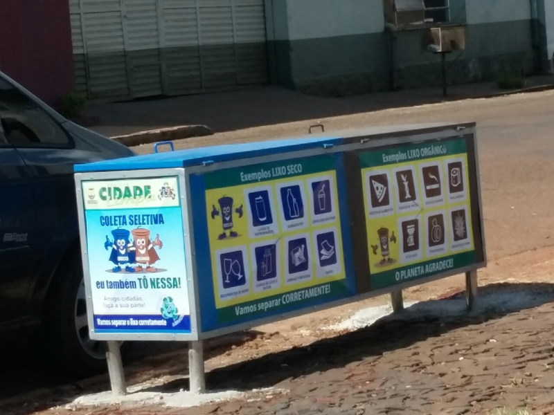 As lixeiras foram instaladas em diversos pontos do município, sempre levando em conta a demanda, ou seja, a necessidade de cada local. Composta por dois compartimentos, cada lixeira se divide em lixo seco e lixo orgânico.